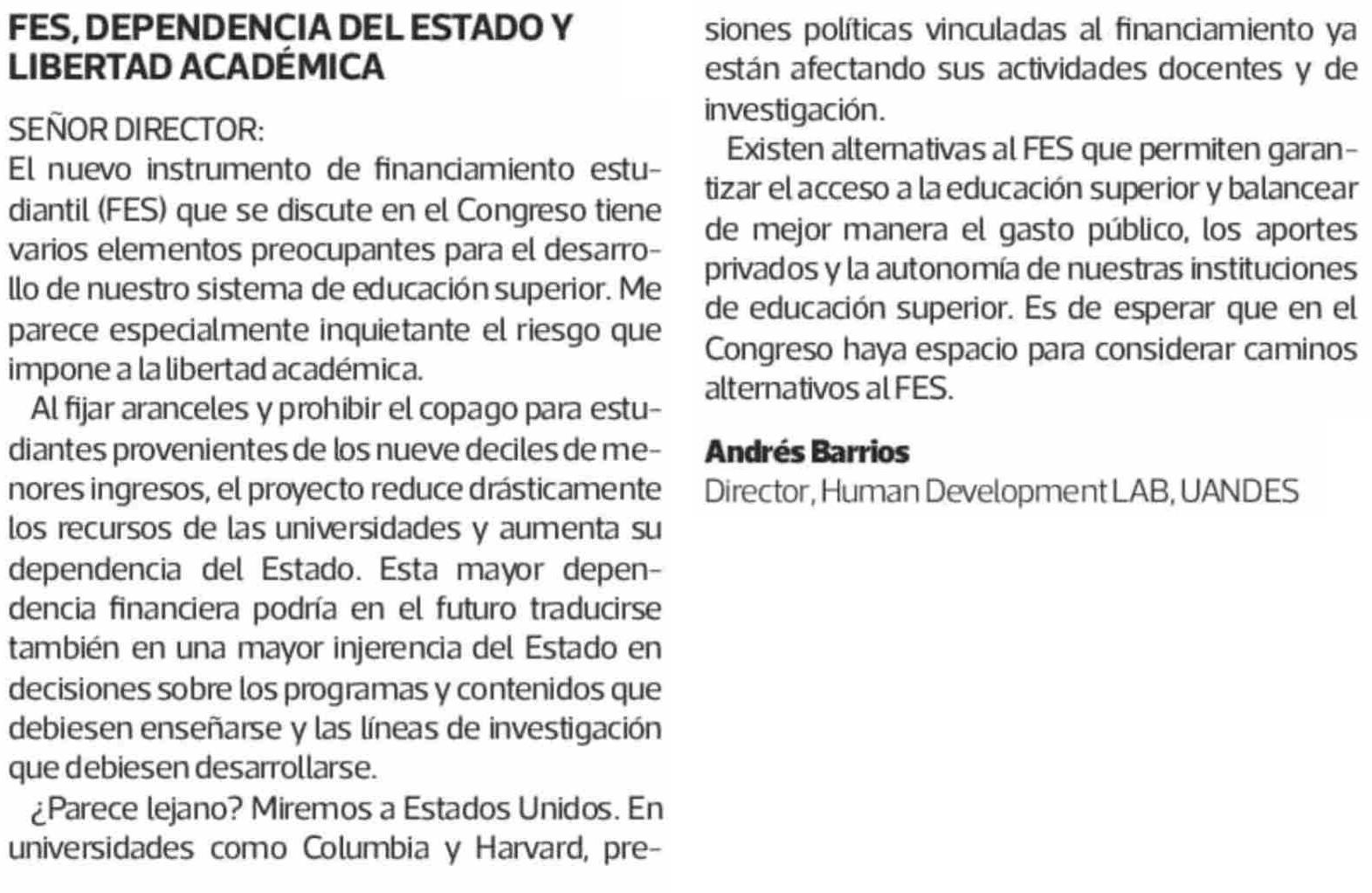 FES, DEPENDENCIA DEL ESTADO Y LIBERTAD ACADEMICA 05-06-2025 La Tercera |