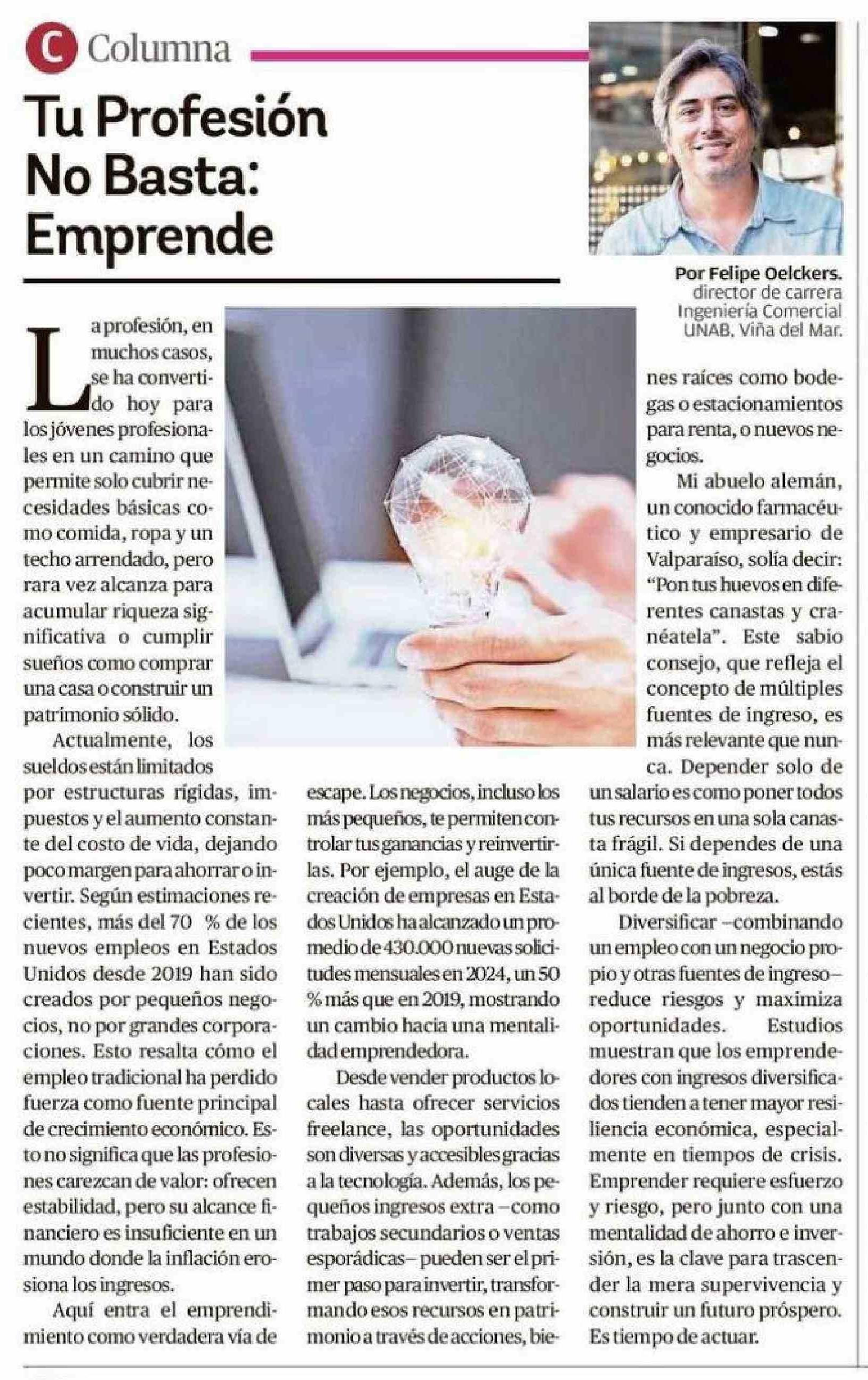 Columnas de Opinión: Tu Profesión No Basta: Emprende