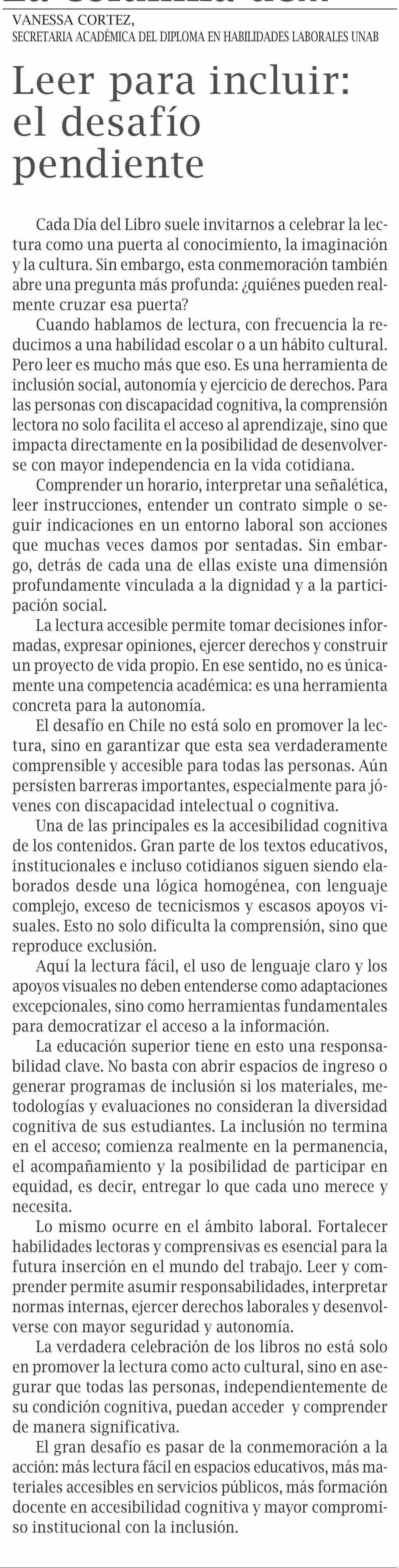 Título: Columnas de Opinión: Leer para incluir: el desafío pendiente