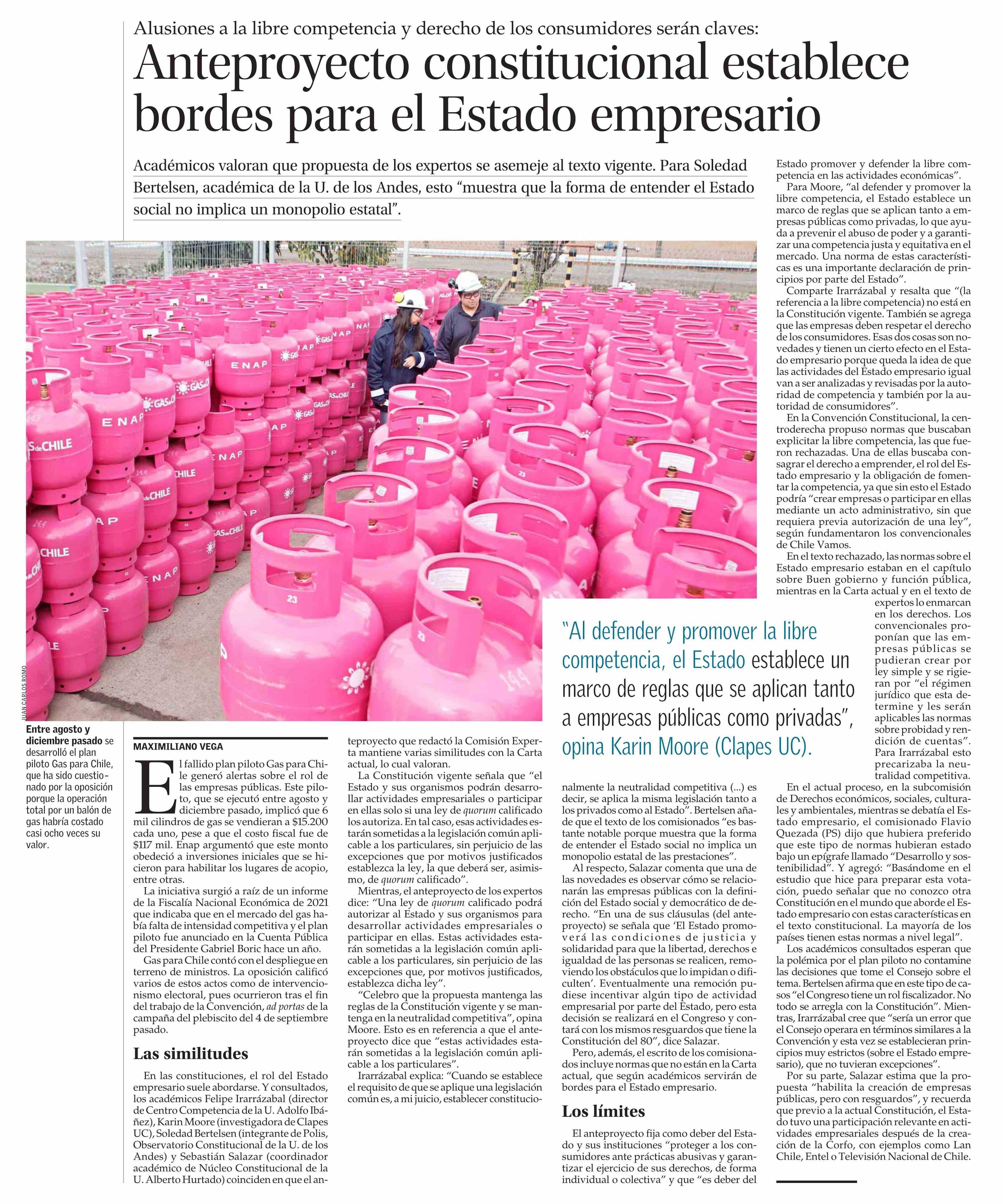 Anteproyecto constitucional establece bordes para el Estado empresario 02-06-2023 El Mercurio |