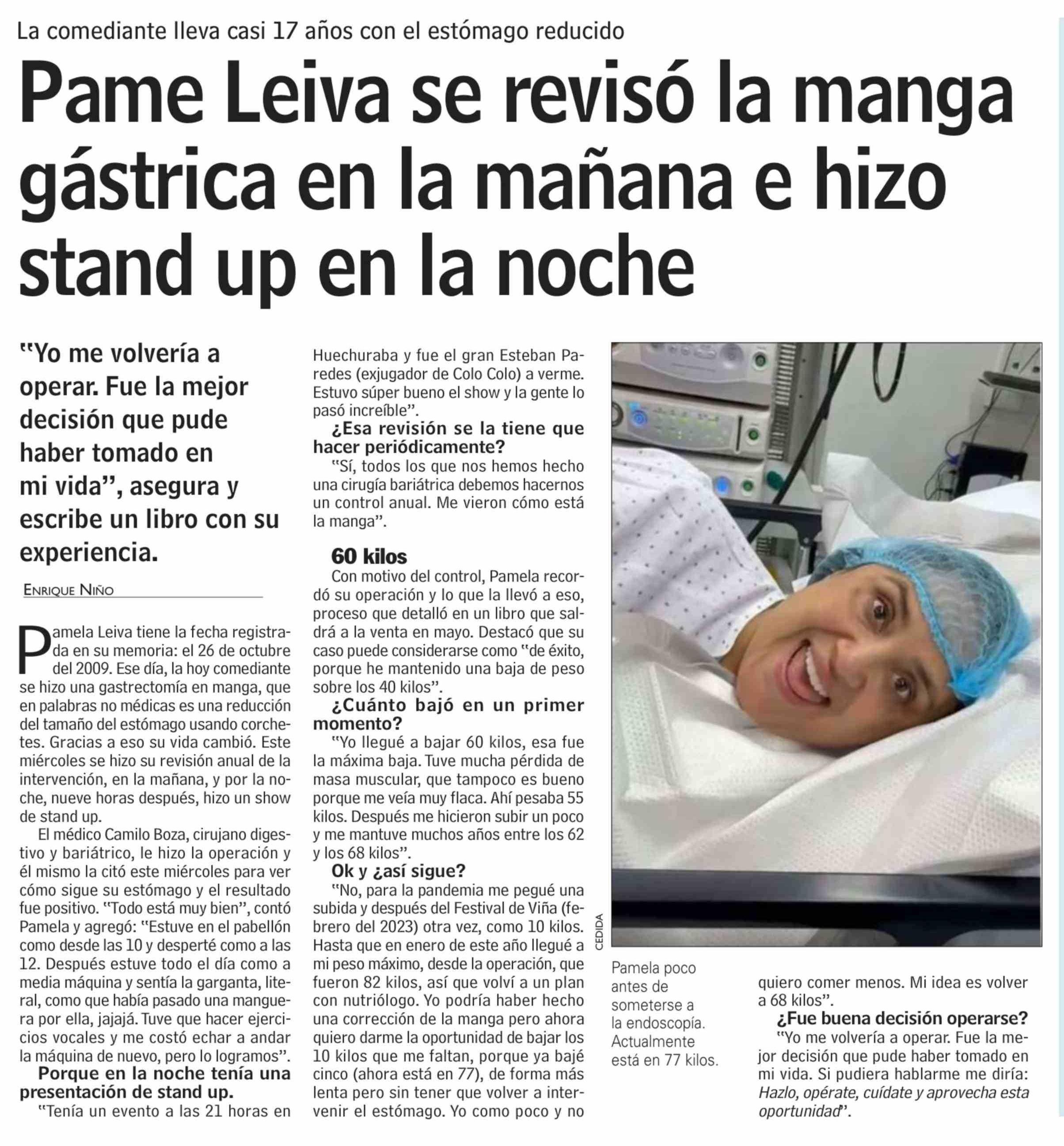Título: Pame Leiva se revisó la manga gástrica en la mañana e hizo stand up en la noche