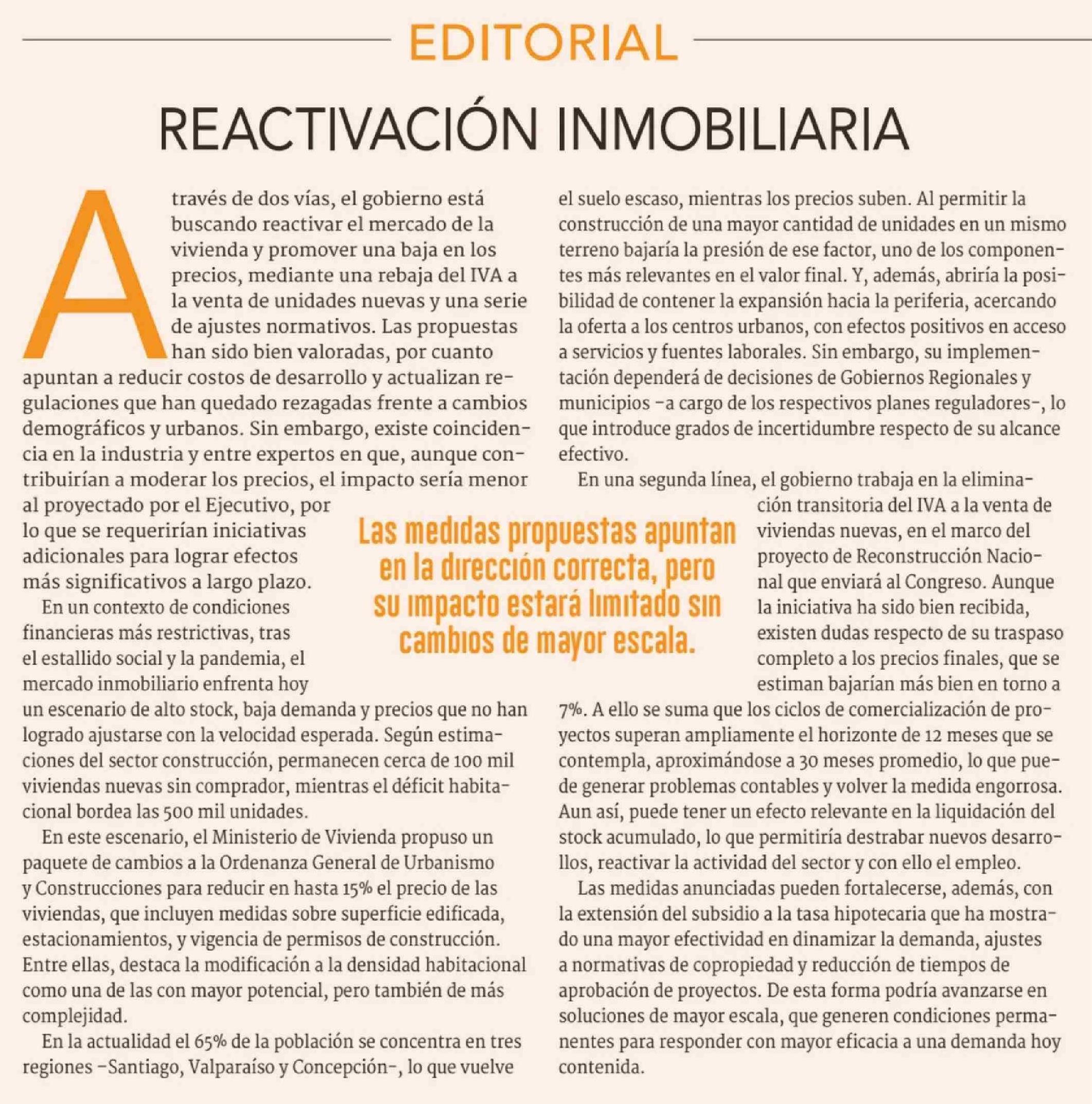 Editorial: REACTIVACIÓN INMOBILIARIA