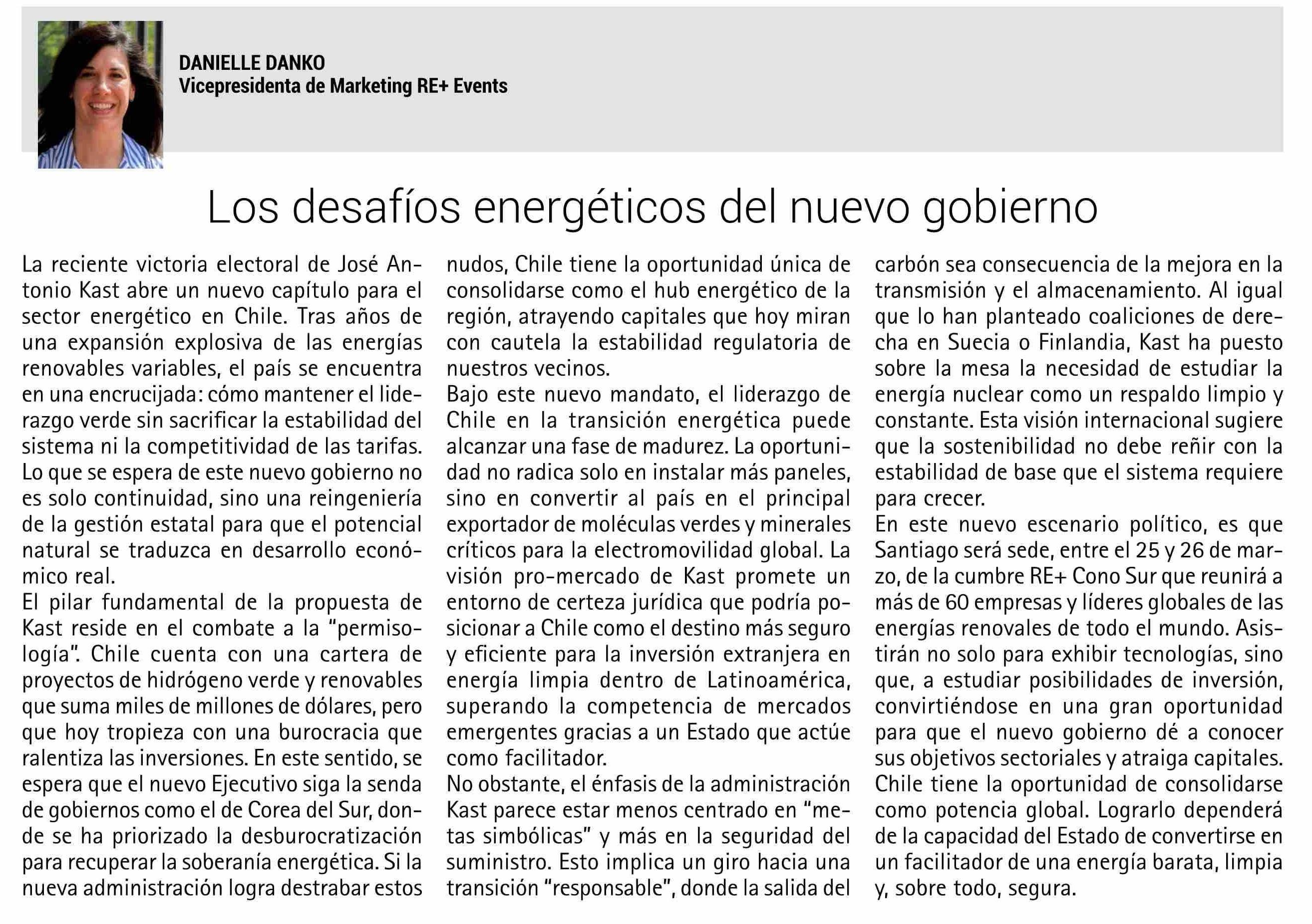 Título: Columnas de Opinión: Los desafíos energéticos del nuevo gobierno