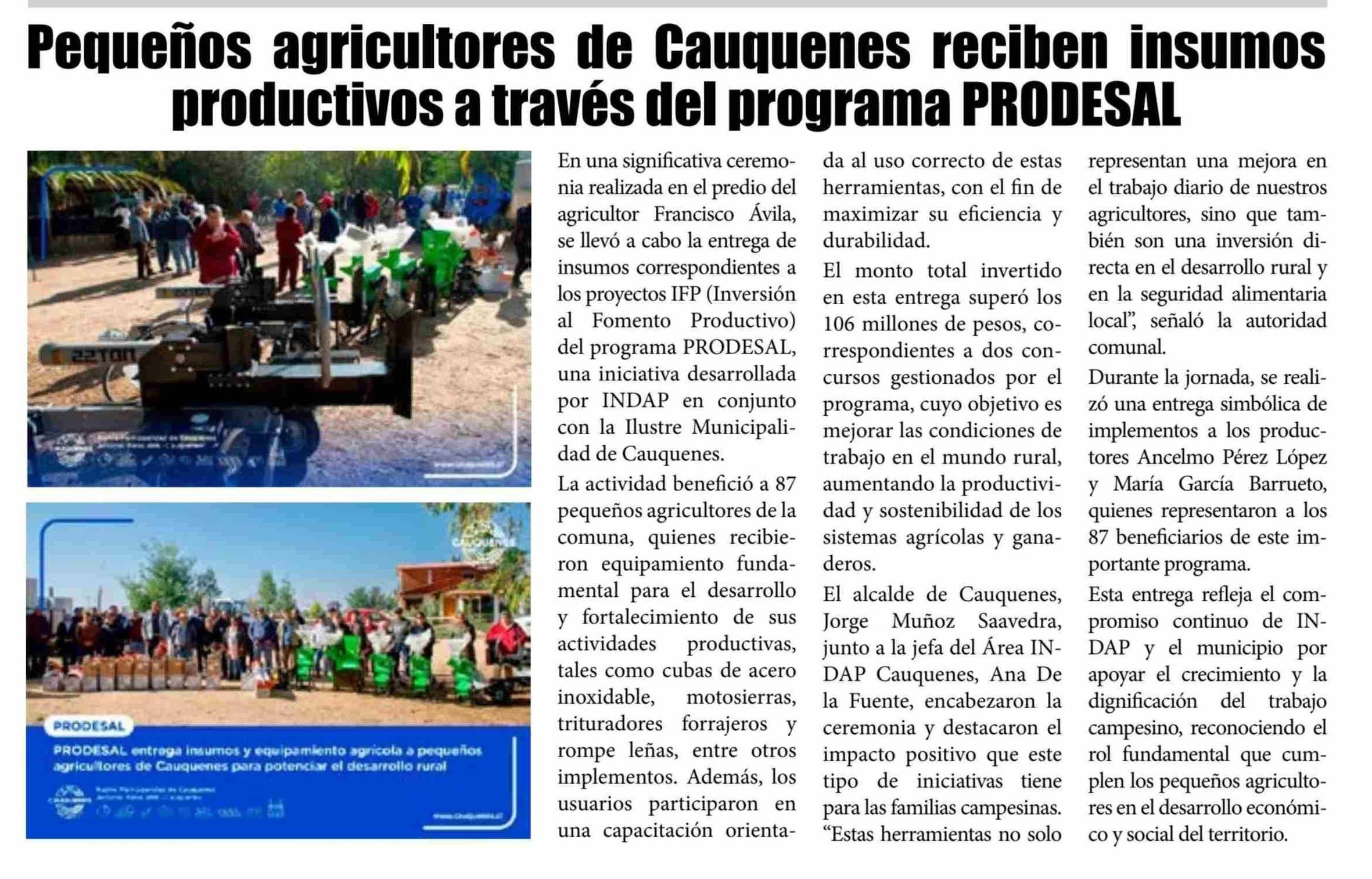 Pequeños agricultores de Cauquenes reciben insumos productivos a través del programa PRODESAL 15-05-2025 El Lector |
