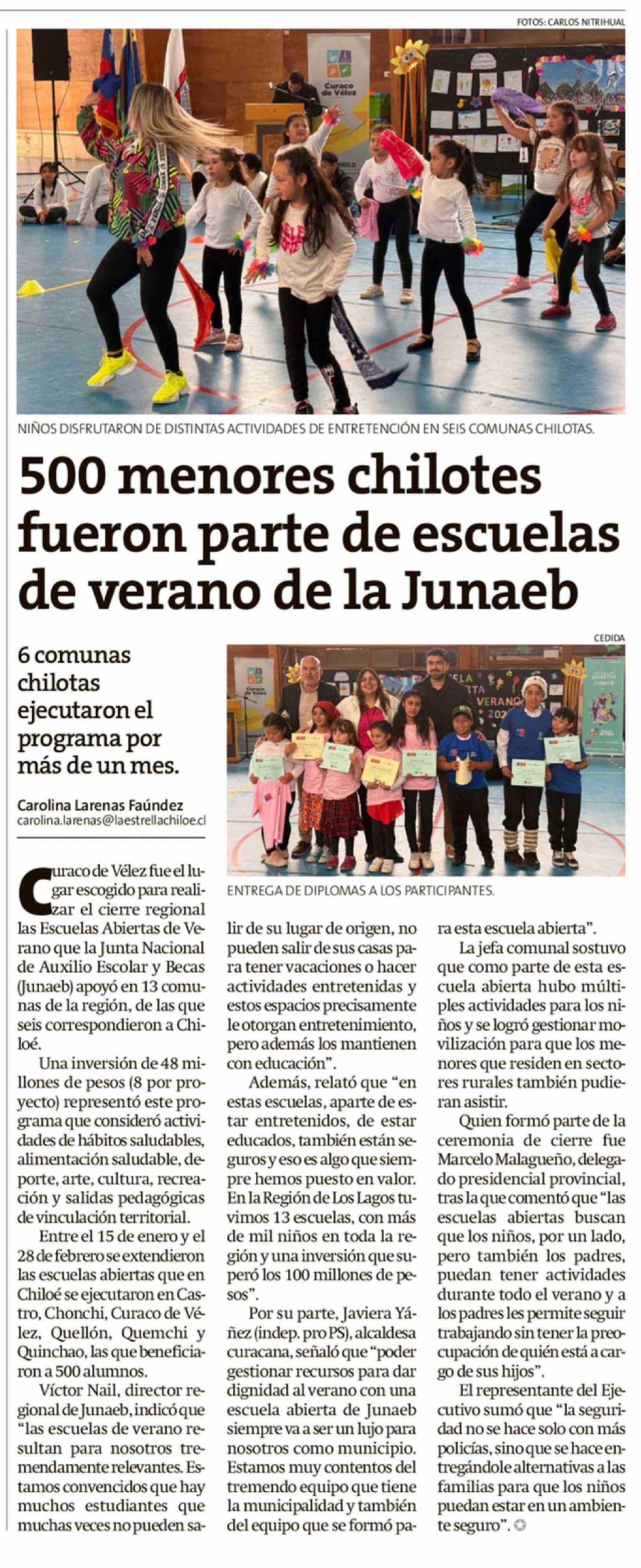 500 Menores chilotes fueron parte de escuelas de verano de la Junaeb 28-02-2026 La Estrella de Chiloé |