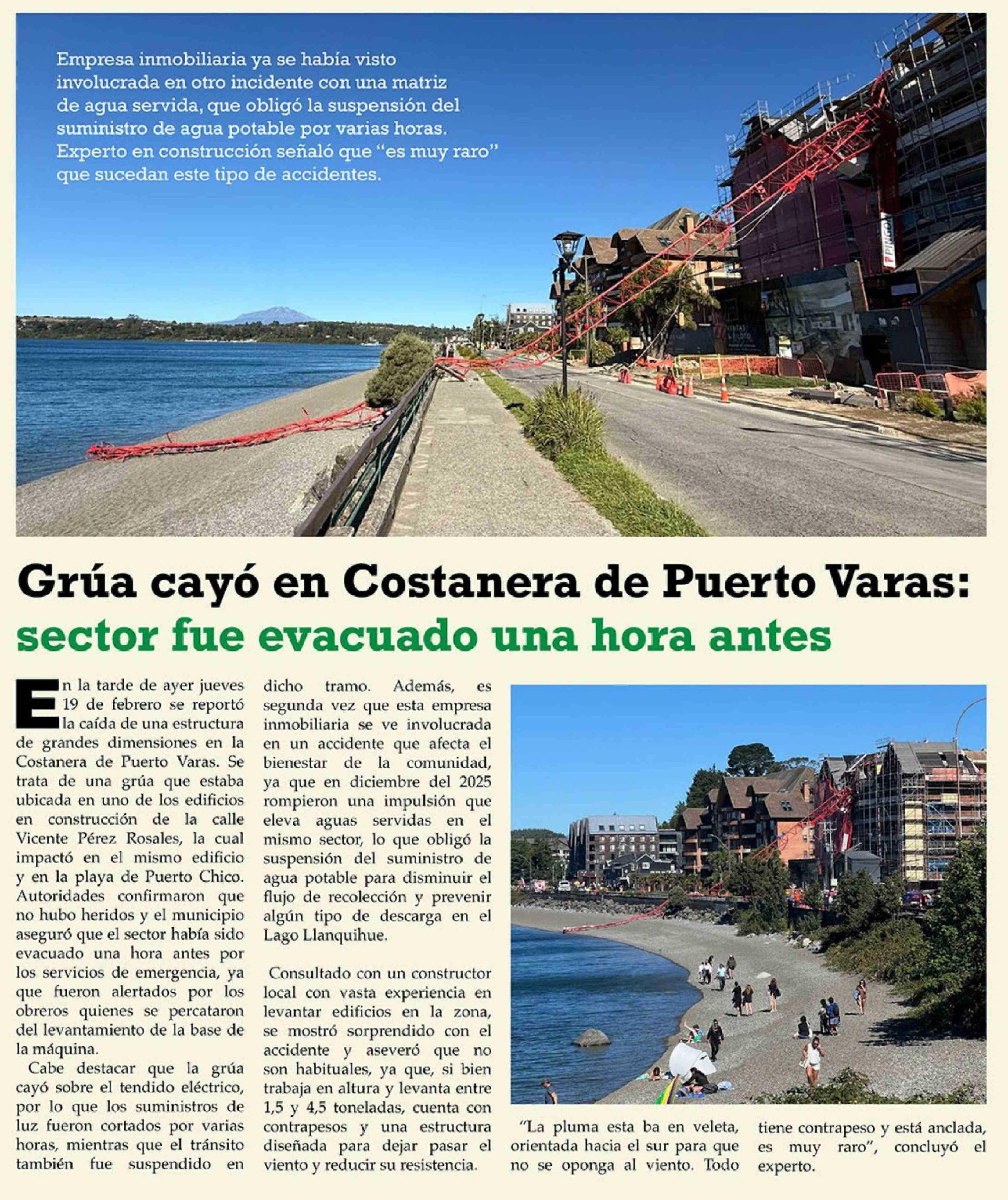 Título: Grúa cayó en Costanera de Puerto Varas: sector fue evacuado una hora antes