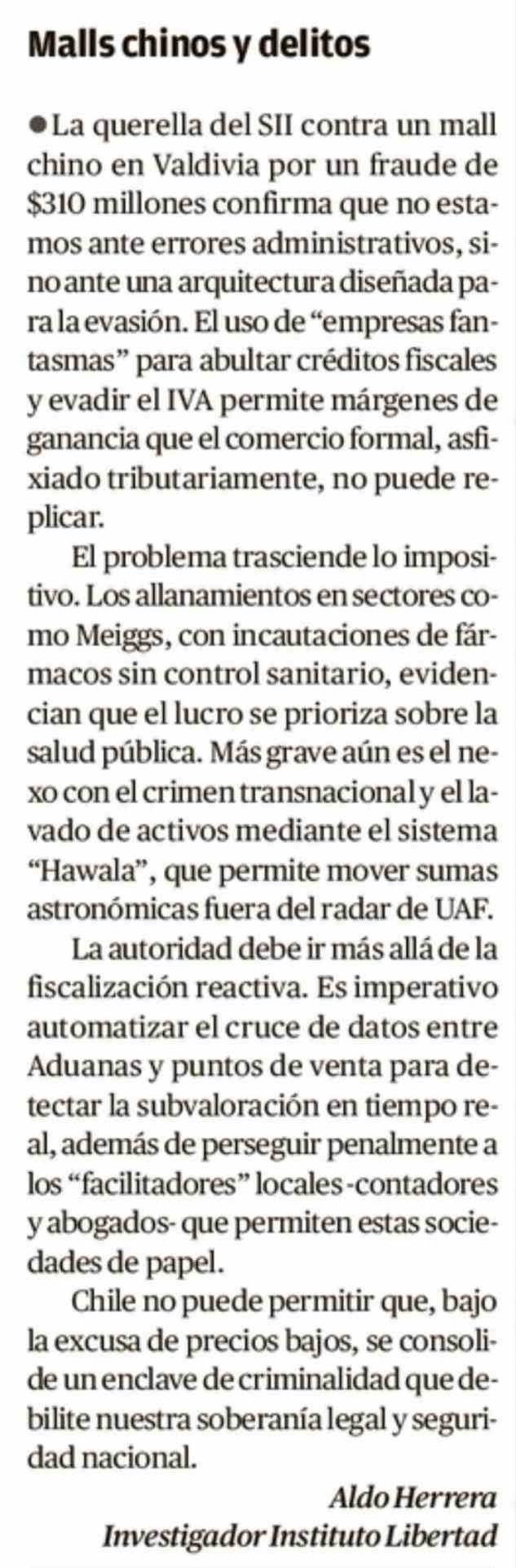 CARTAS: Malls chinos y delitos 13-02-2026 Diario Austral Región de Los Ríos |