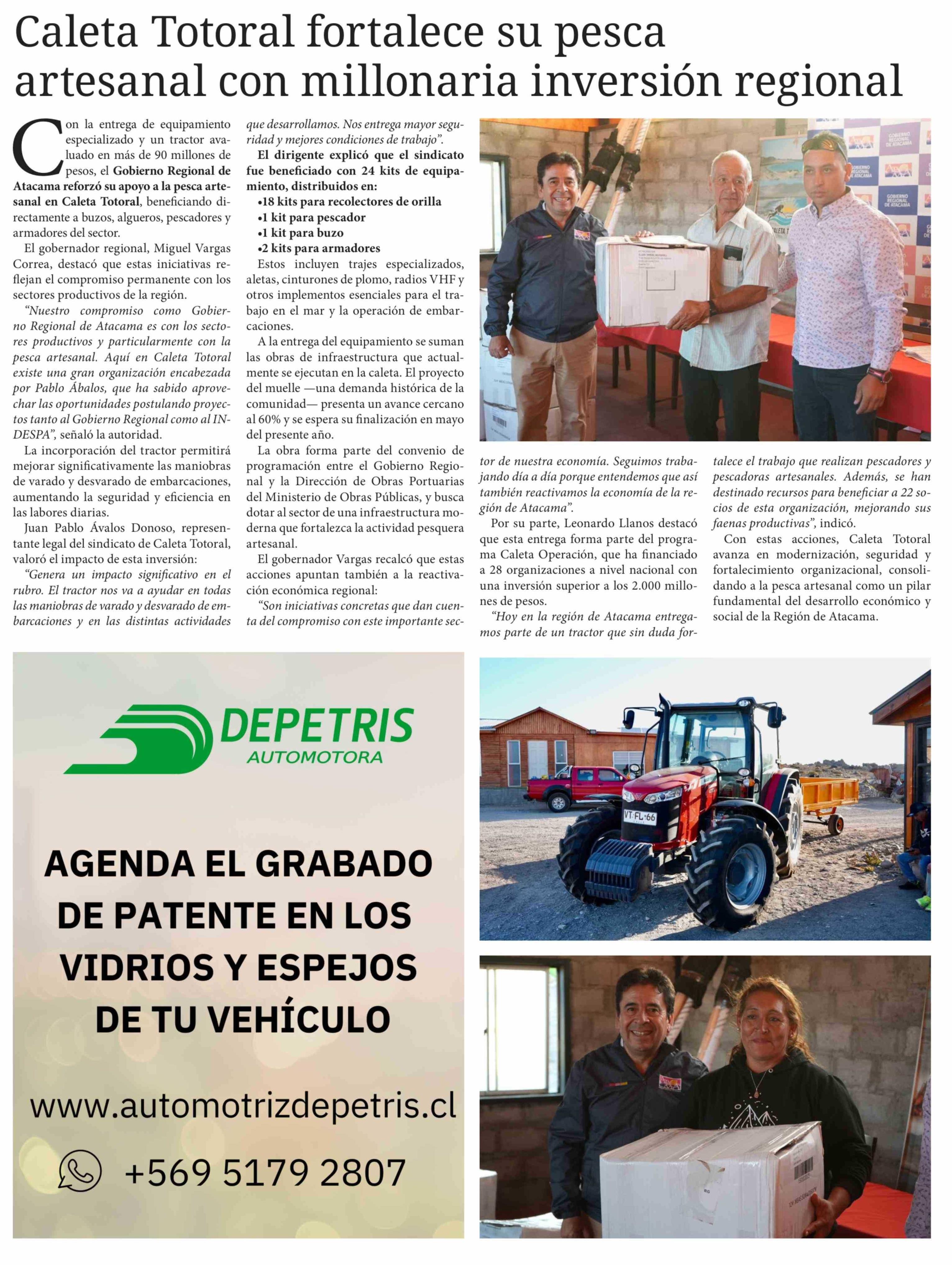 | Título: | Caleta Totoral fortalece su pesca artesanal con millonaria inversión regional |