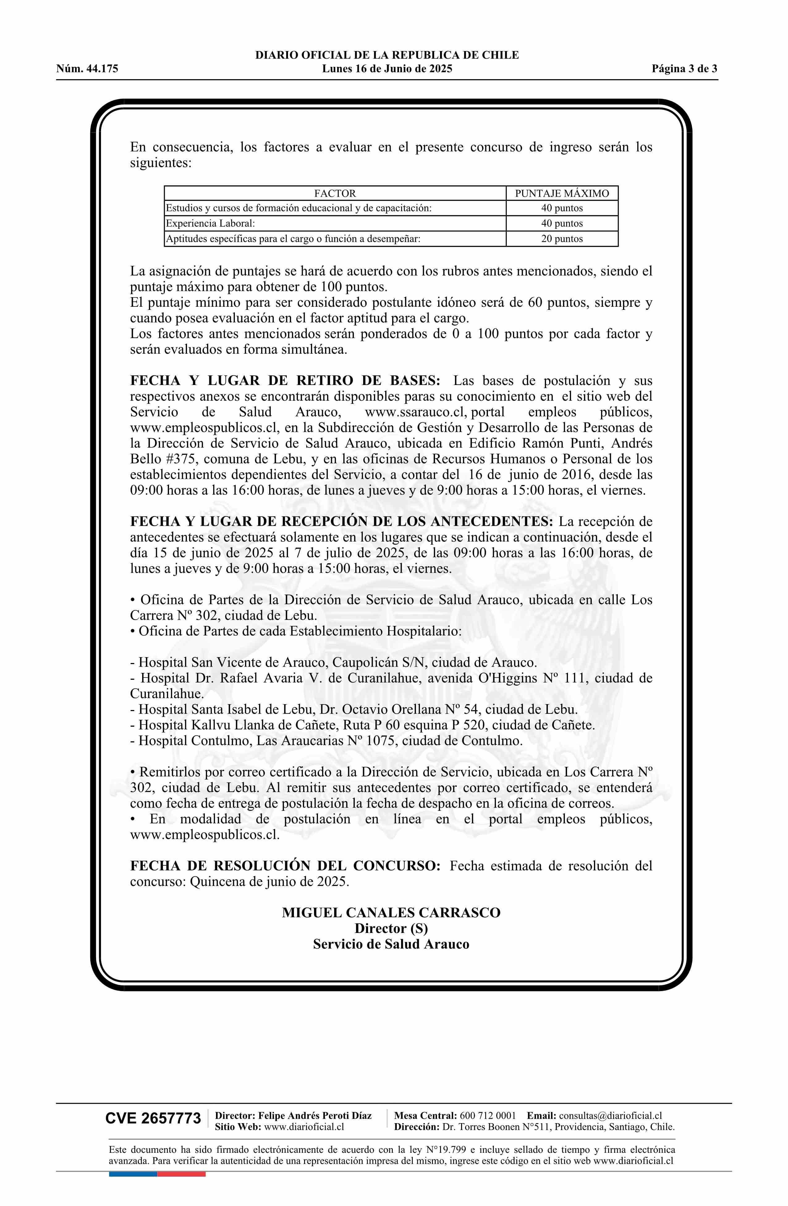 AVISO LICITACIONES: Llama a concurso público de ingreso para proveer cargos de planta de los estamentos técnicos y administrativos en el Servicio de Salud Arauco 16-06-2025 Diario Oficial Edición Electrónica |