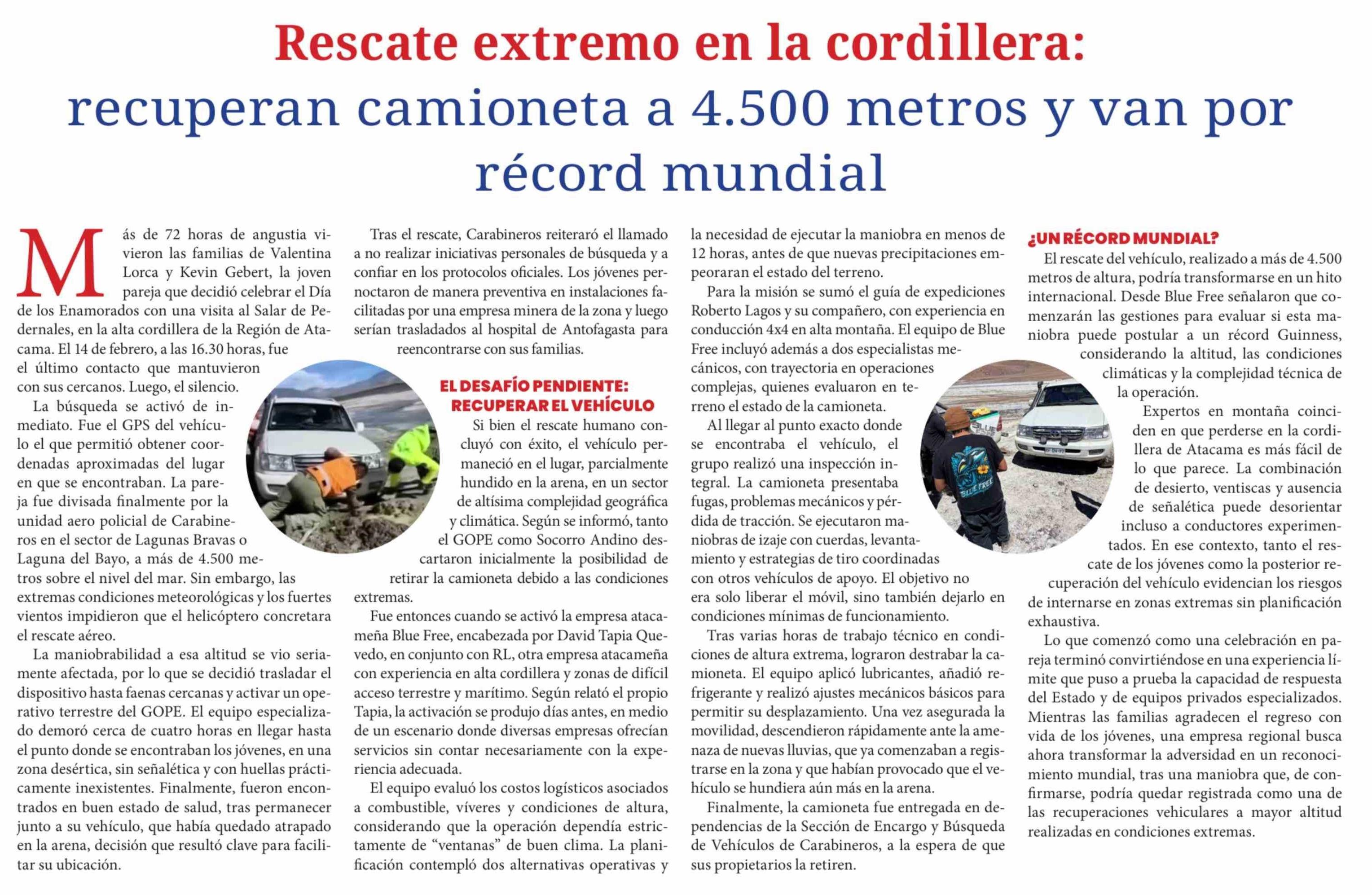 Rescate extremo en la cordillera: recuperan camioneta a 4.500 metros y van por récord mundial 23-02-2026 Diario Chañarcillo |