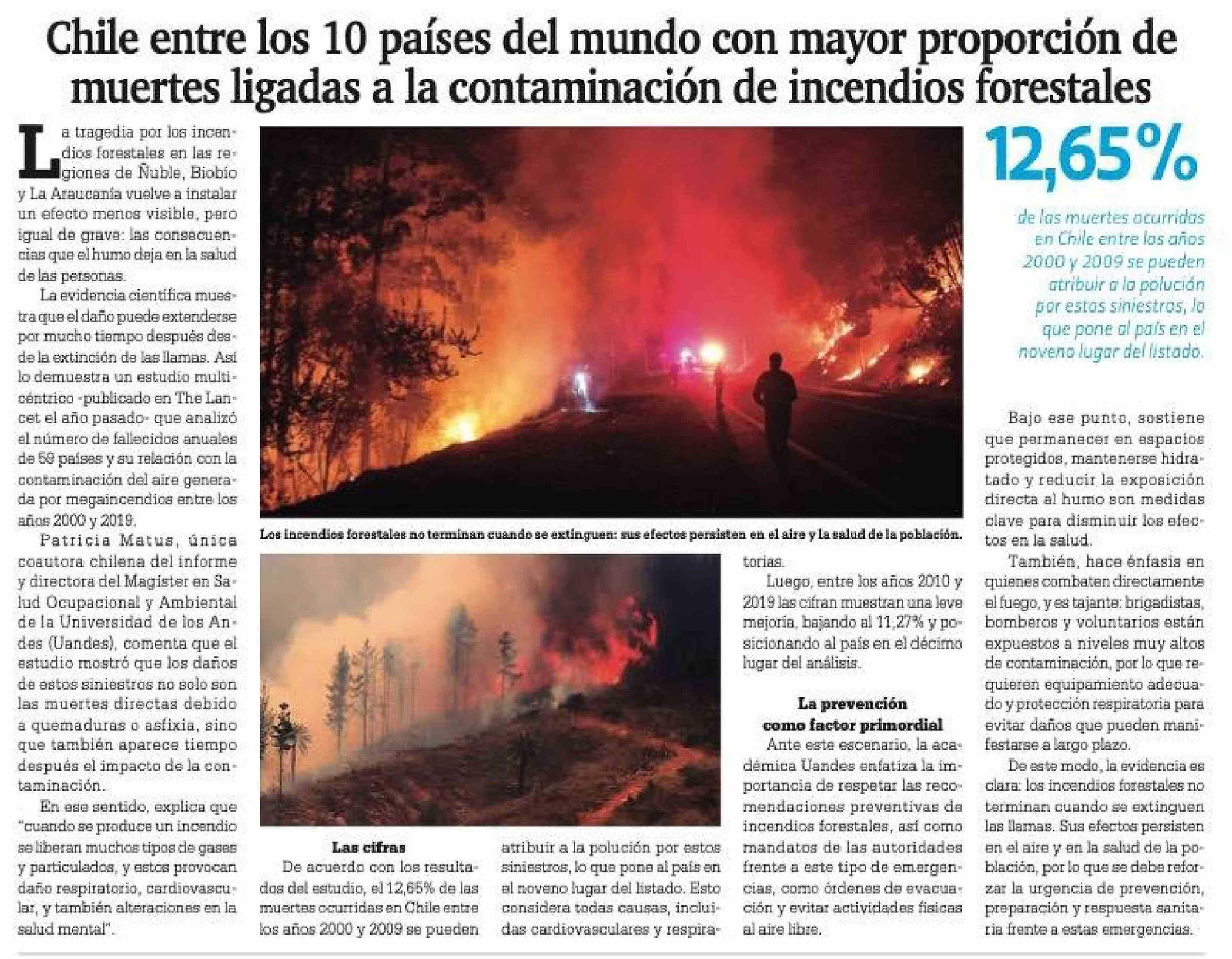 Título: Chile entre los 10 países del mundo con mayor proporción de muertes ligadas a la contaminación de incendios forestales