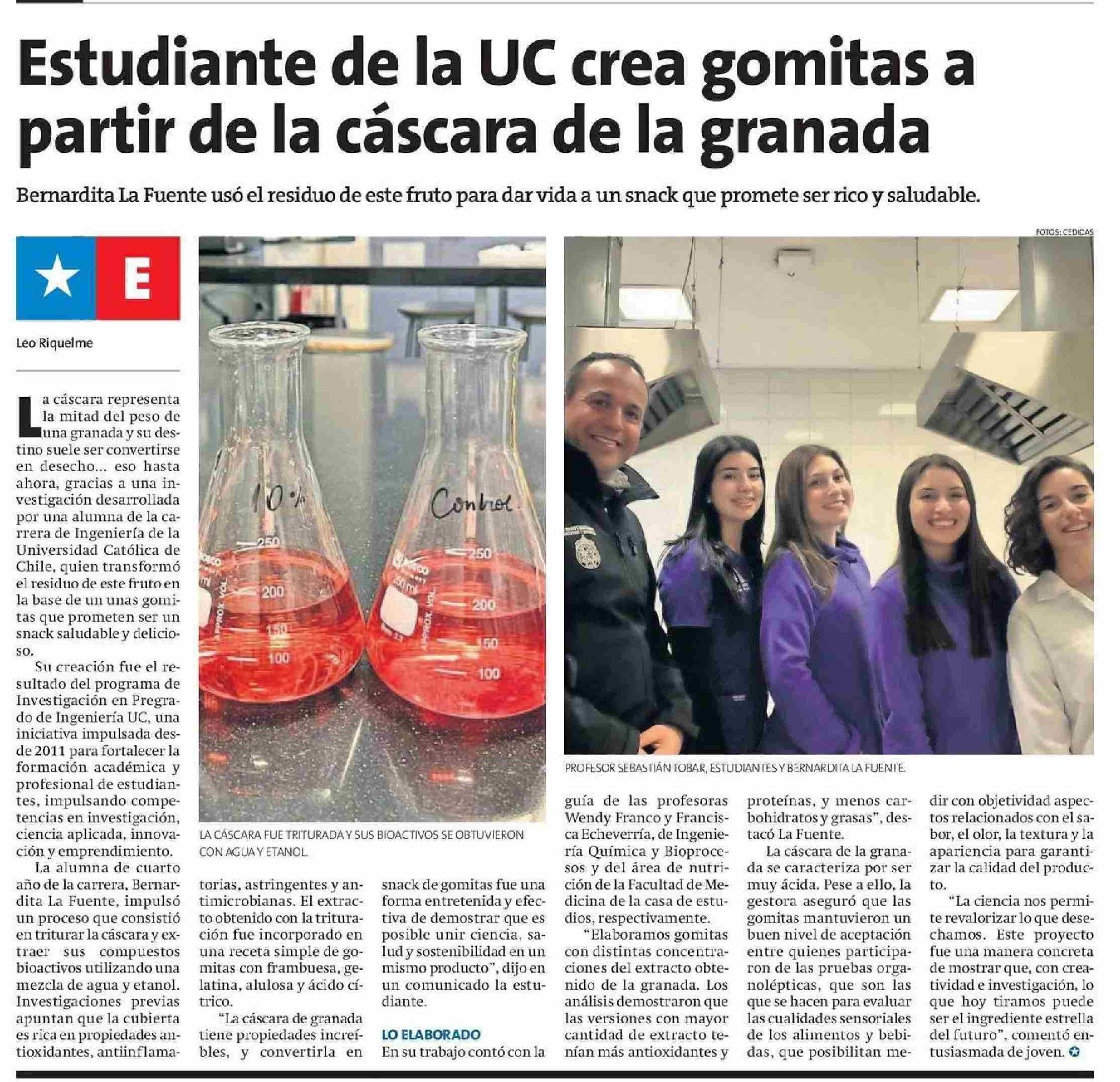 Estudiante de la UC crea gomitas a partir de la cáscara de la granada 27-05-2025 La Estrella de Antofagasta |