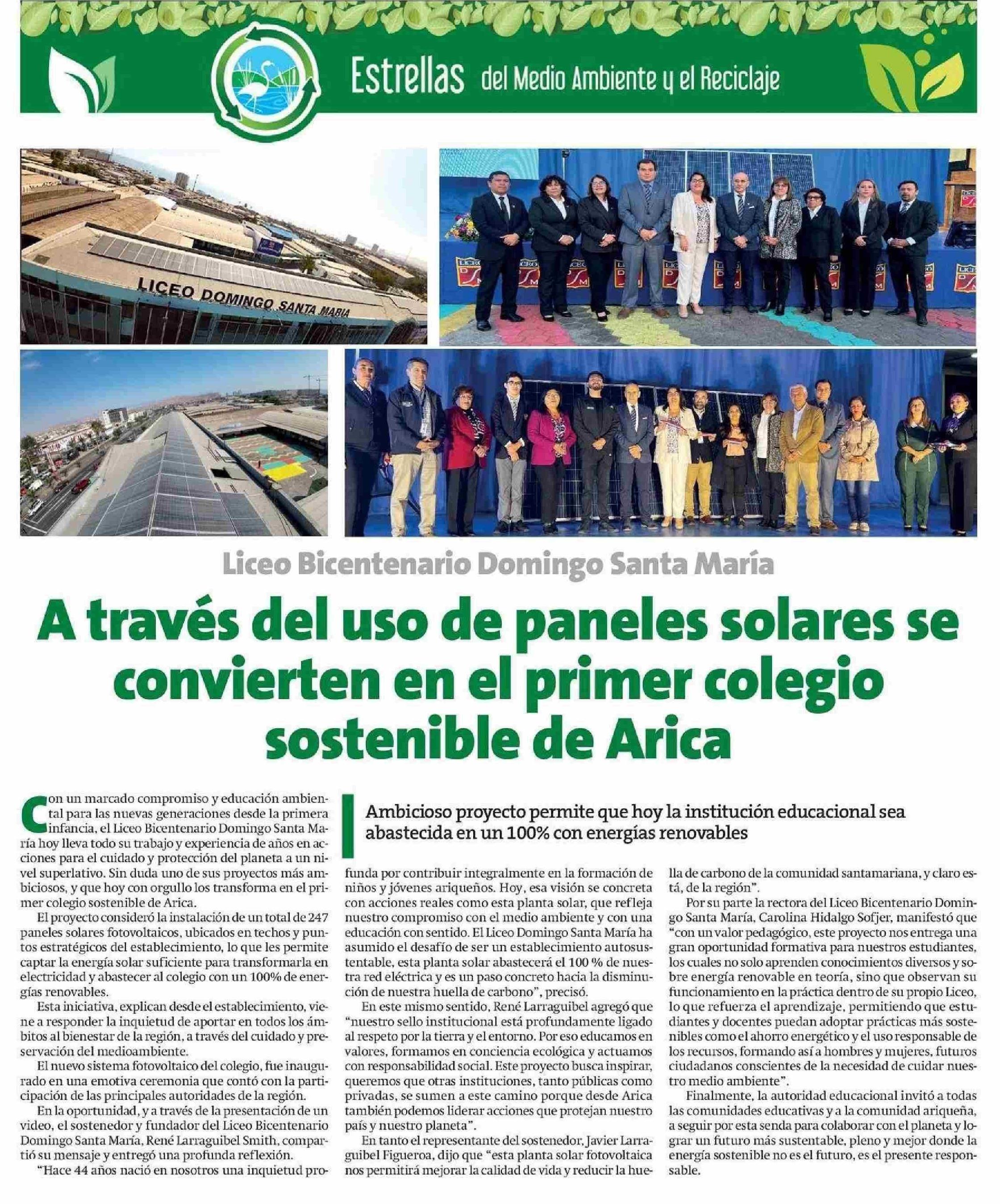 Título: A través del uso de paneles solares se convierten en el primer colegio sostenible de Arica