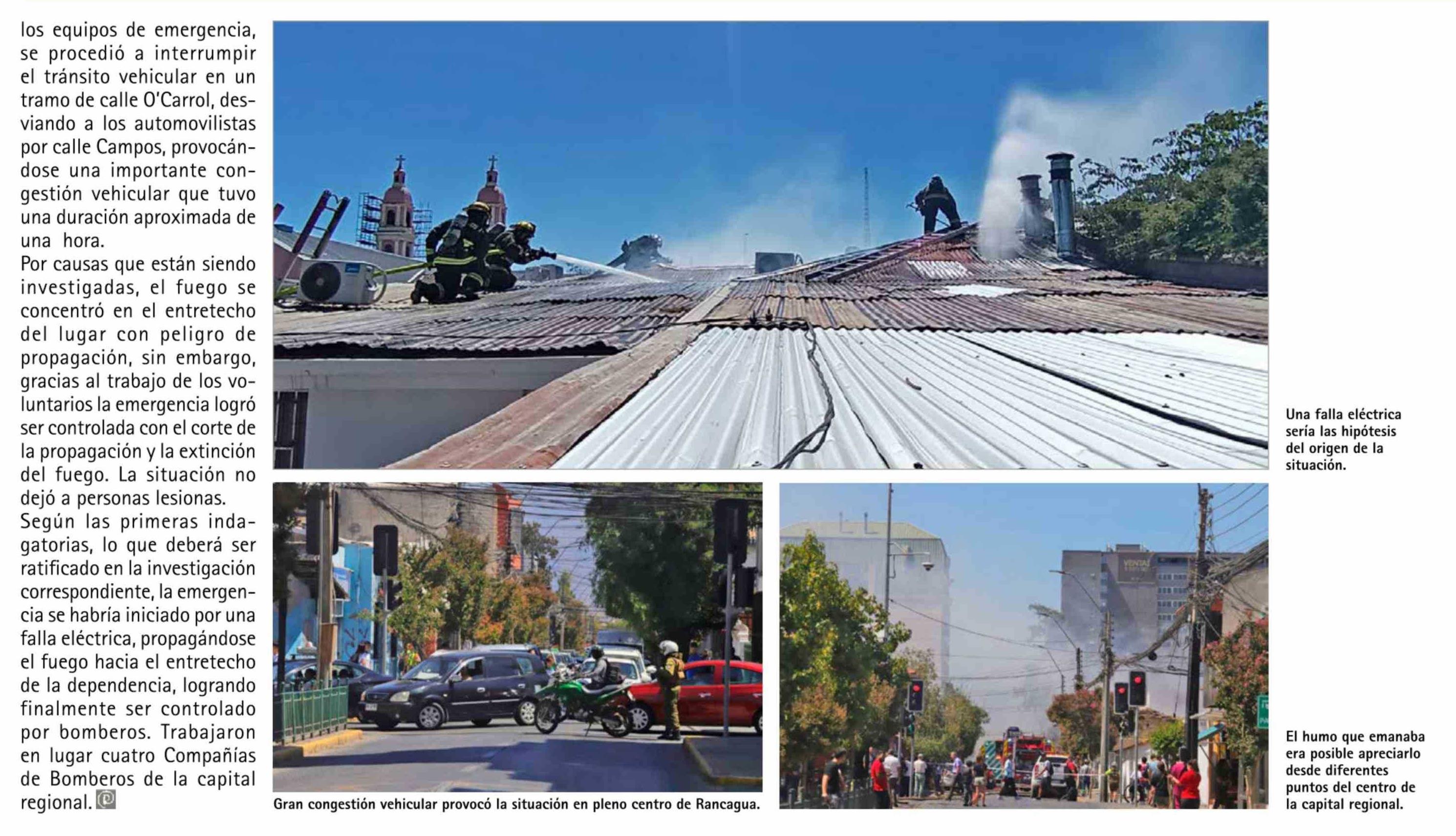 | Título: | Incendio estructural afectó dependencias del restaurante, "Club Rancagua" |