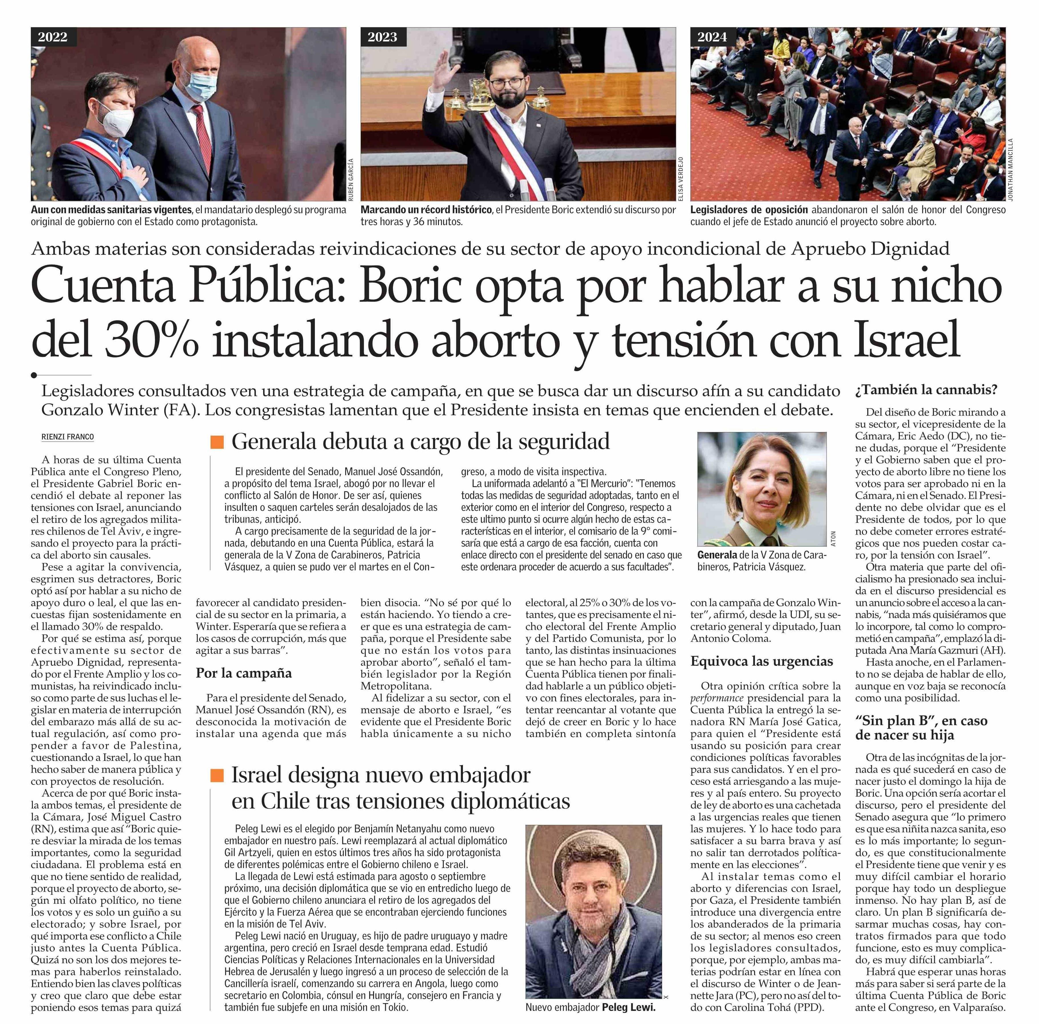 Título: Cuenta Pública: Boric opta por hablar a su nicho del 30% instalando aborto y tensión con Israel