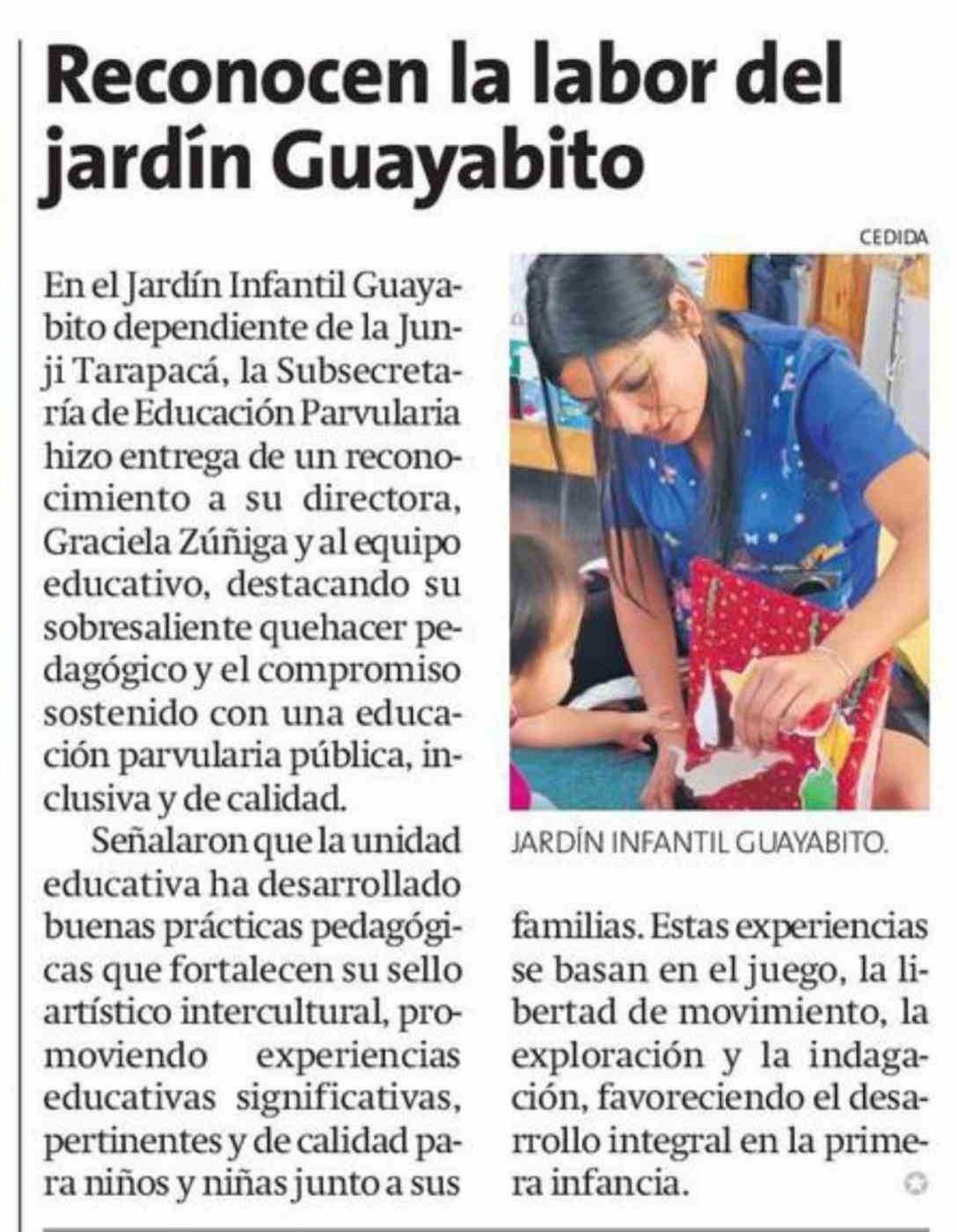 Reconocen la labor del jardín Guayabito 17-01-2026 La Estrella de Iquique |