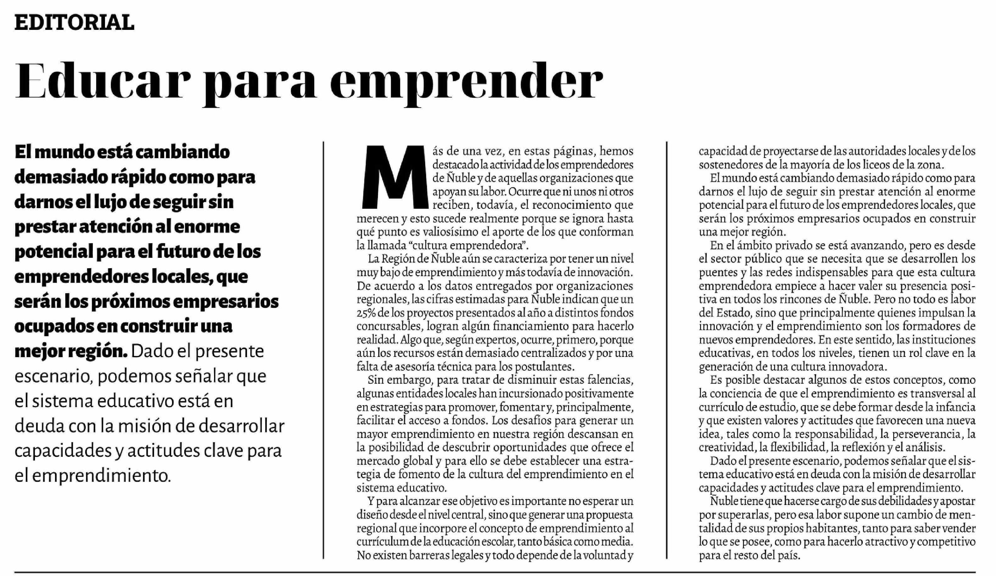 Título: Editorial: Educar para emprender