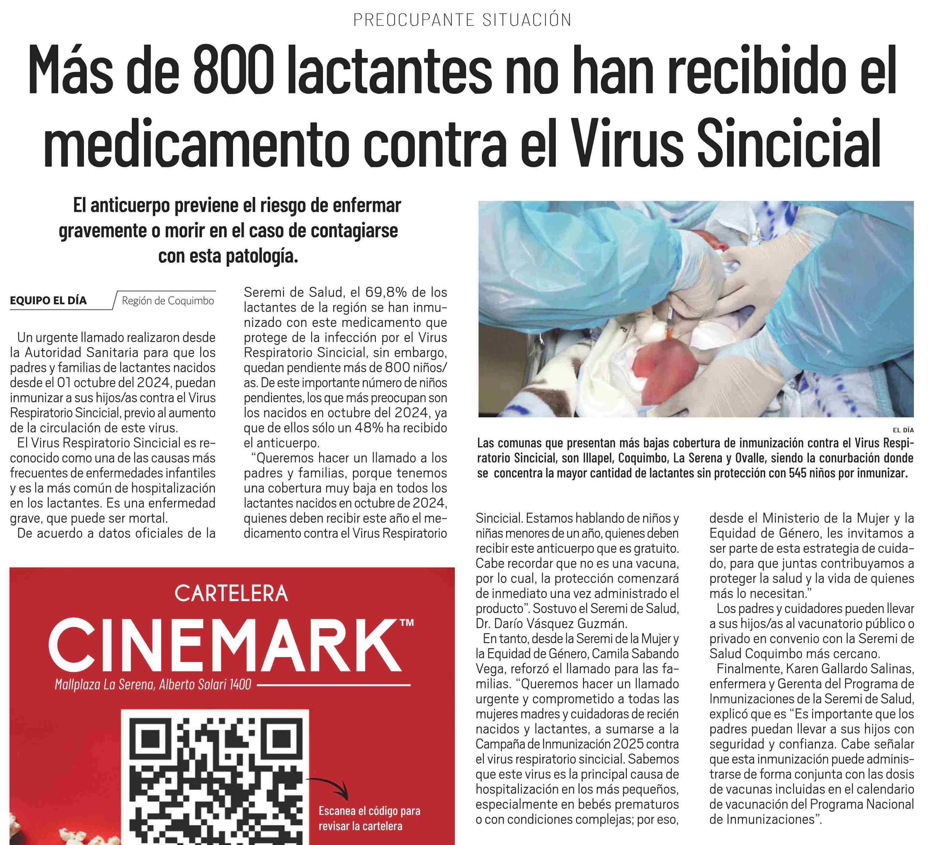 Más de 800 lactantes no han recibido el medicamento contra el Virus Sincicial 06-05-2025 El Día |