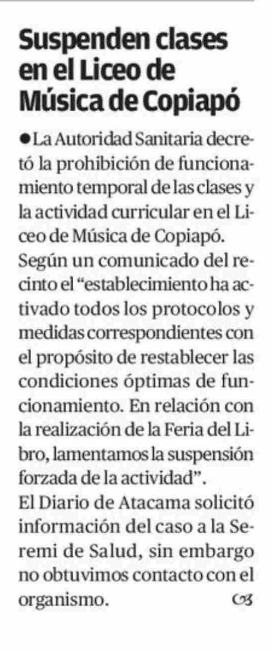 Título: Suspenden clases en el Liceo de Música de Copiapó