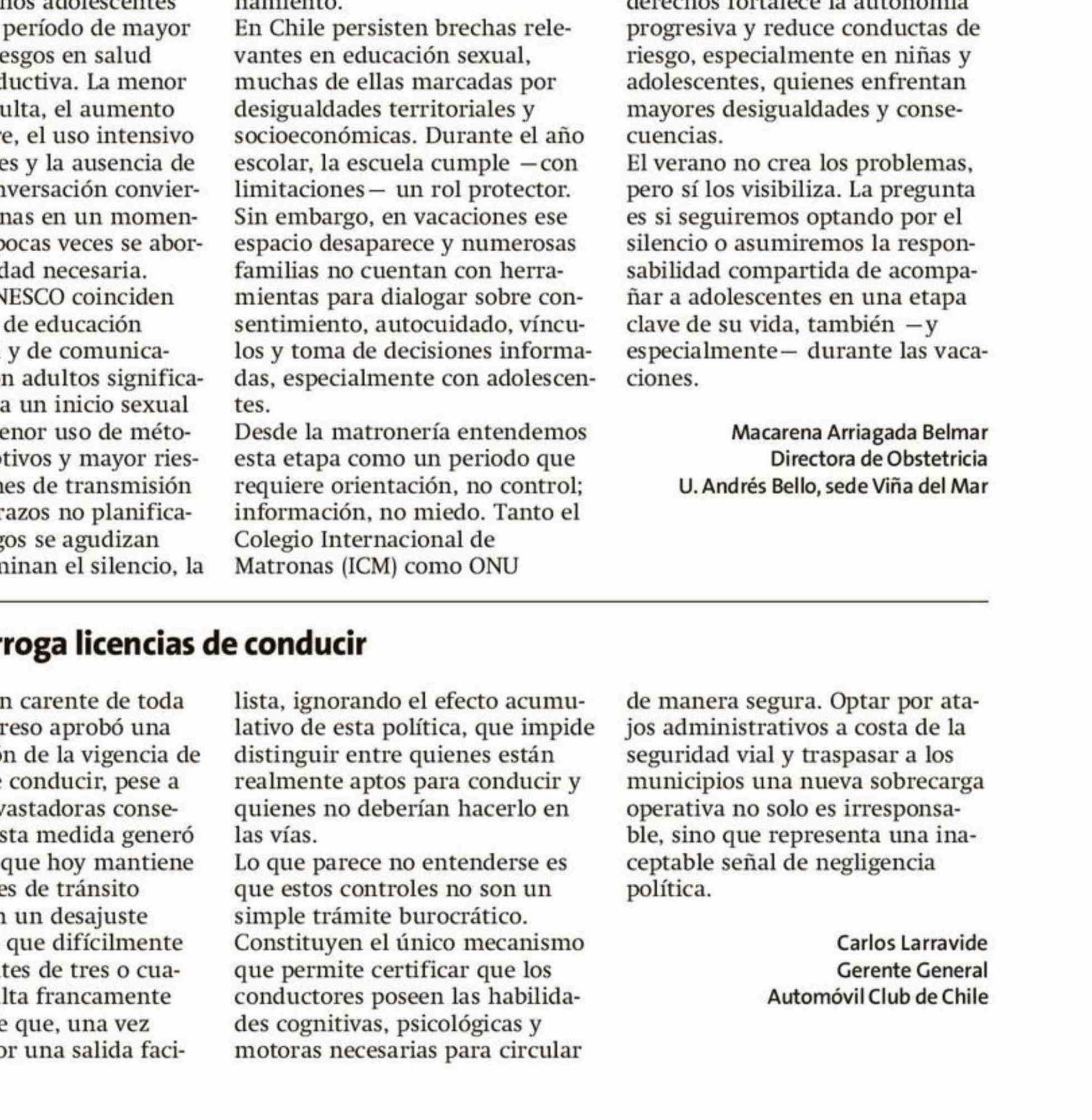Columnas de Opinión: Adolescencia, verano y silencios incómodos 29-01-2026 La Estrella de Valparaíso |