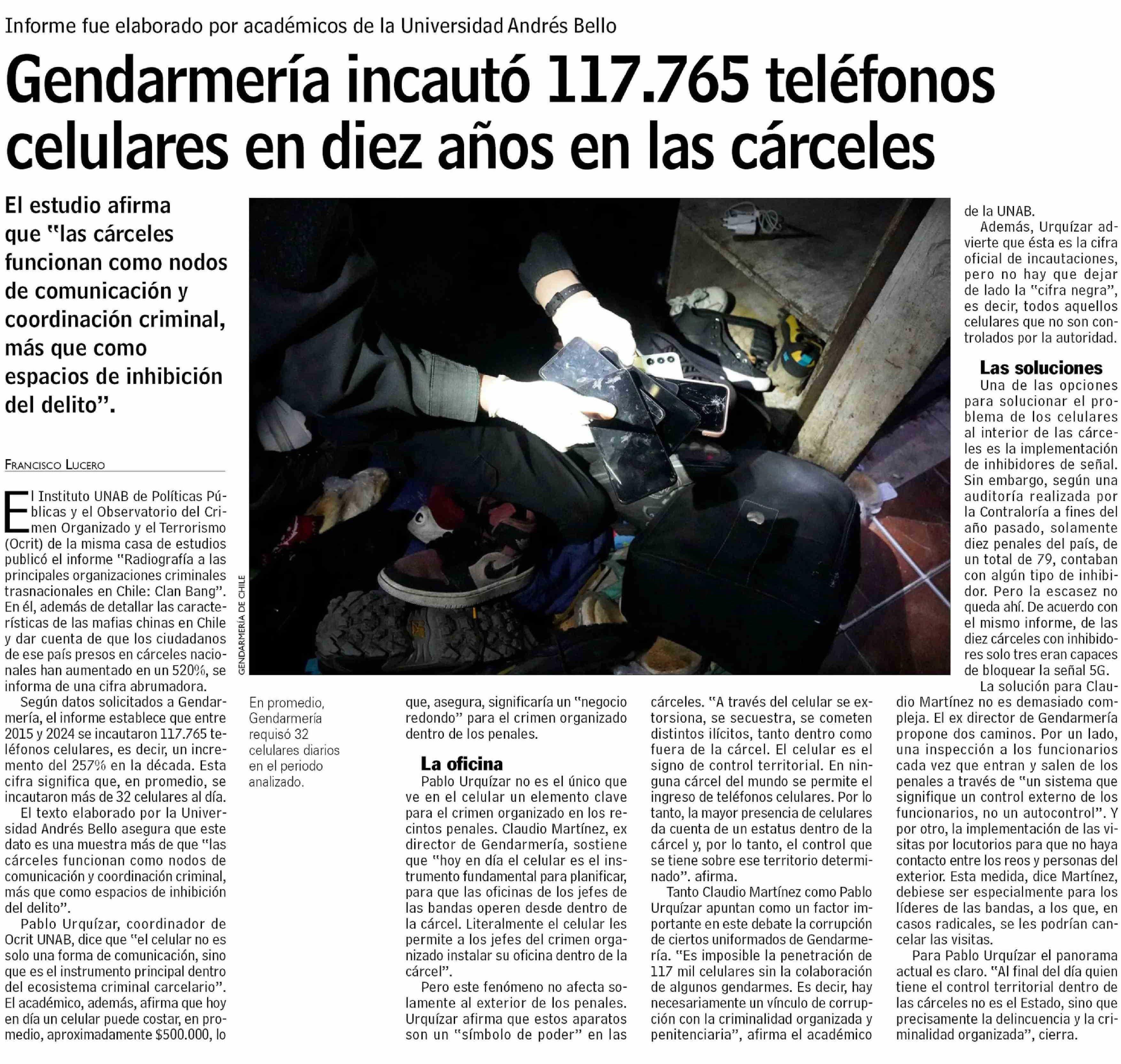 | Título: | Gendarmería incautó 117.765 teléfonos celulares en diez años en las cárceles |