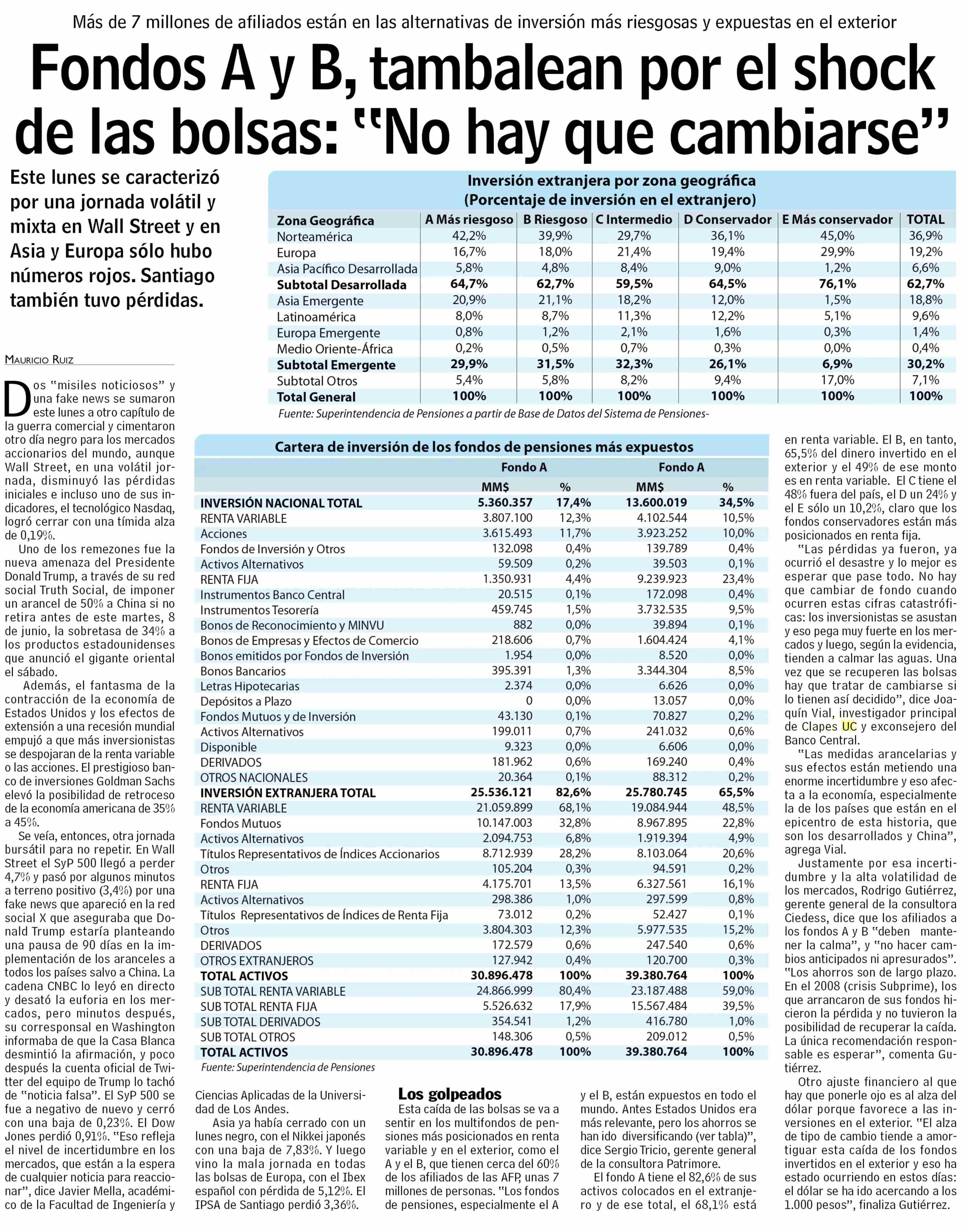 Fondos A y B, tambalean por el shock de las bolsas: “No hay que cambiarse” 08-04-2025 Las Últimas Noticias |