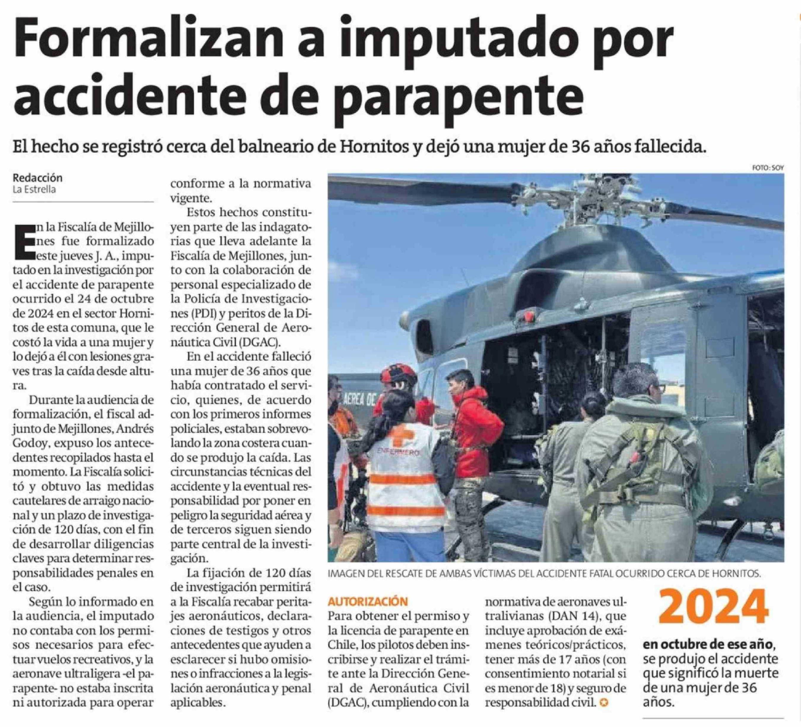 Formalizan a imputado por accidente de parapente 15-02-2026 La Estrella de Antofagasta |