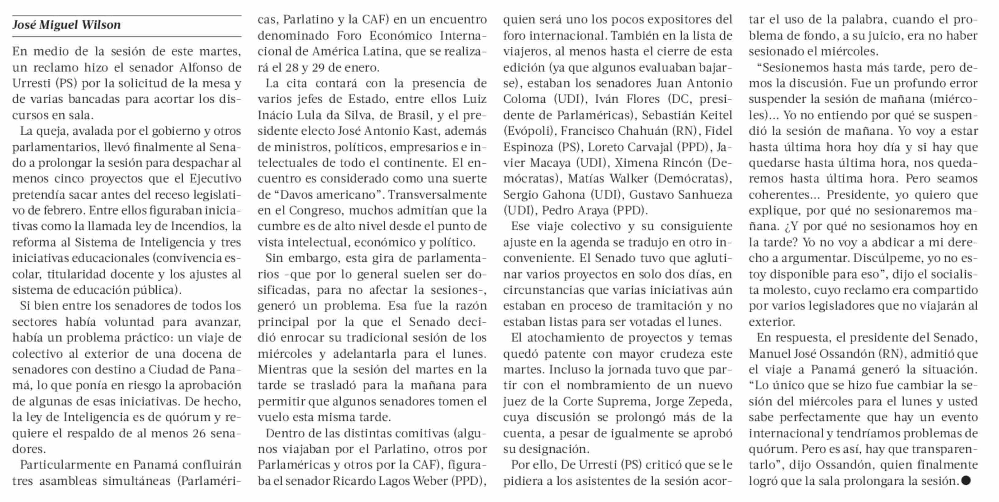 Título: Viaje de senadores a Panamá puso en apuros la agenda legislativa de La Moneda