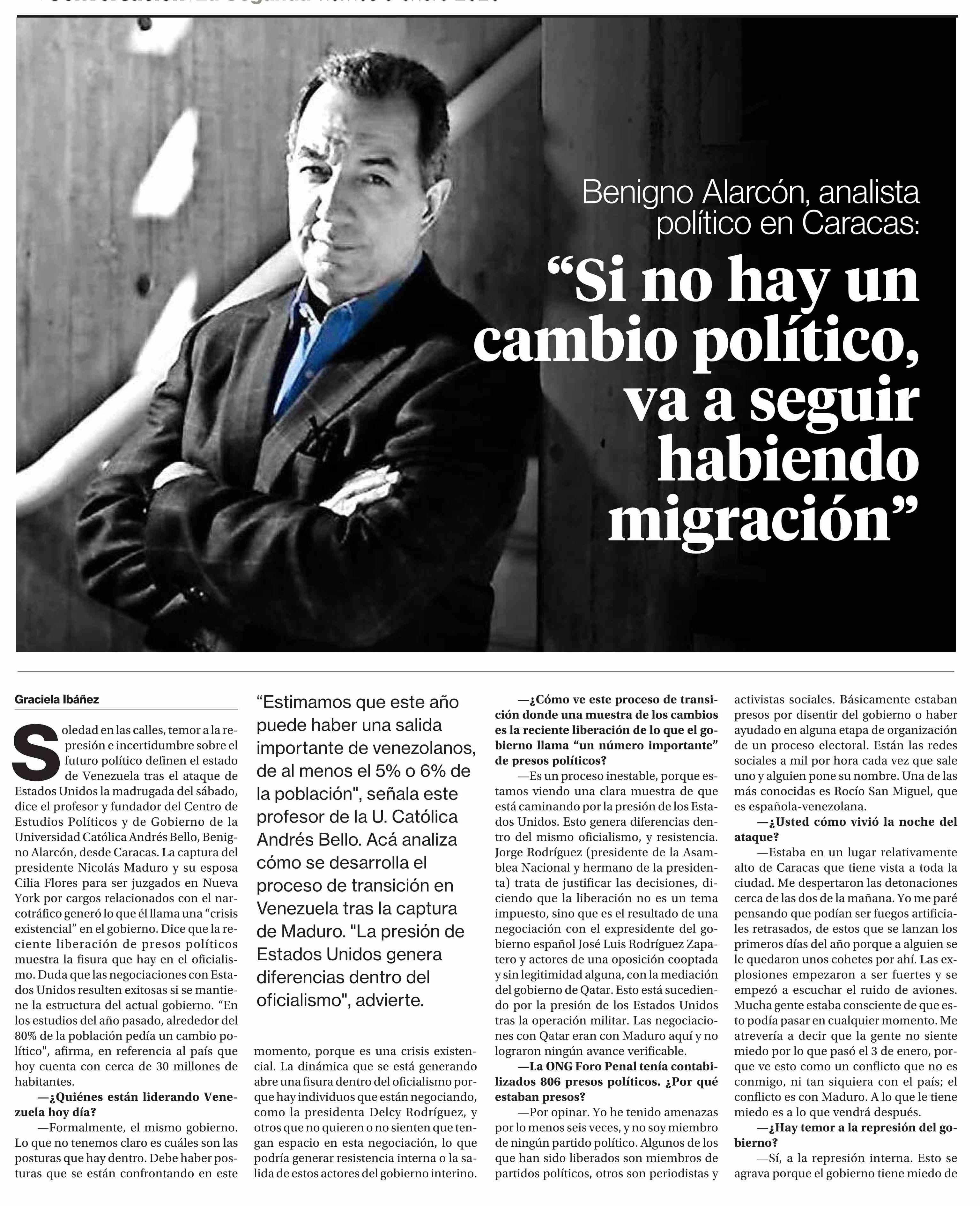 "Si no hay un cambio político, va a seguir habiendo migración" 09-01-2026 La Segunda |