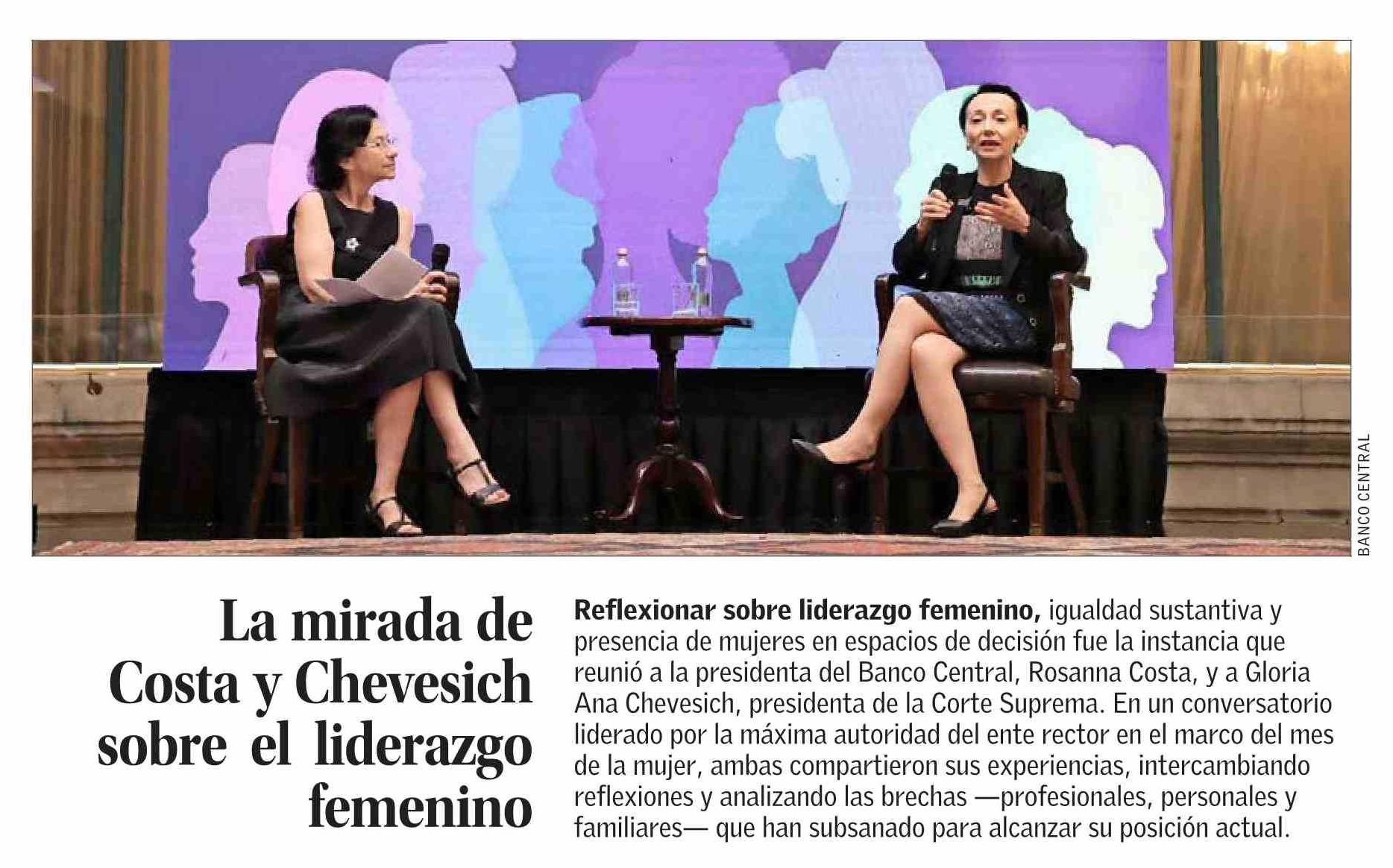 La mirada de Costa y Chevesich sobre el liderazgo femenino 13-03-2026 El Mercurio |