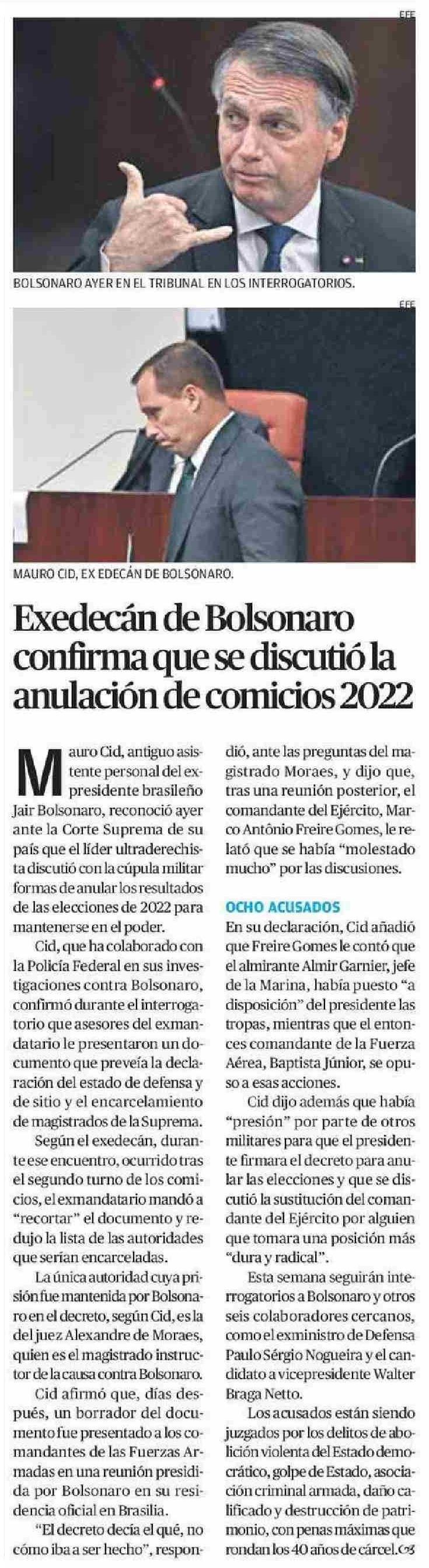 Exedecán de Bolsonaro confirma que se discutió la anulación de comicios 2022 10-06-2025 El Mercurio de Calama |