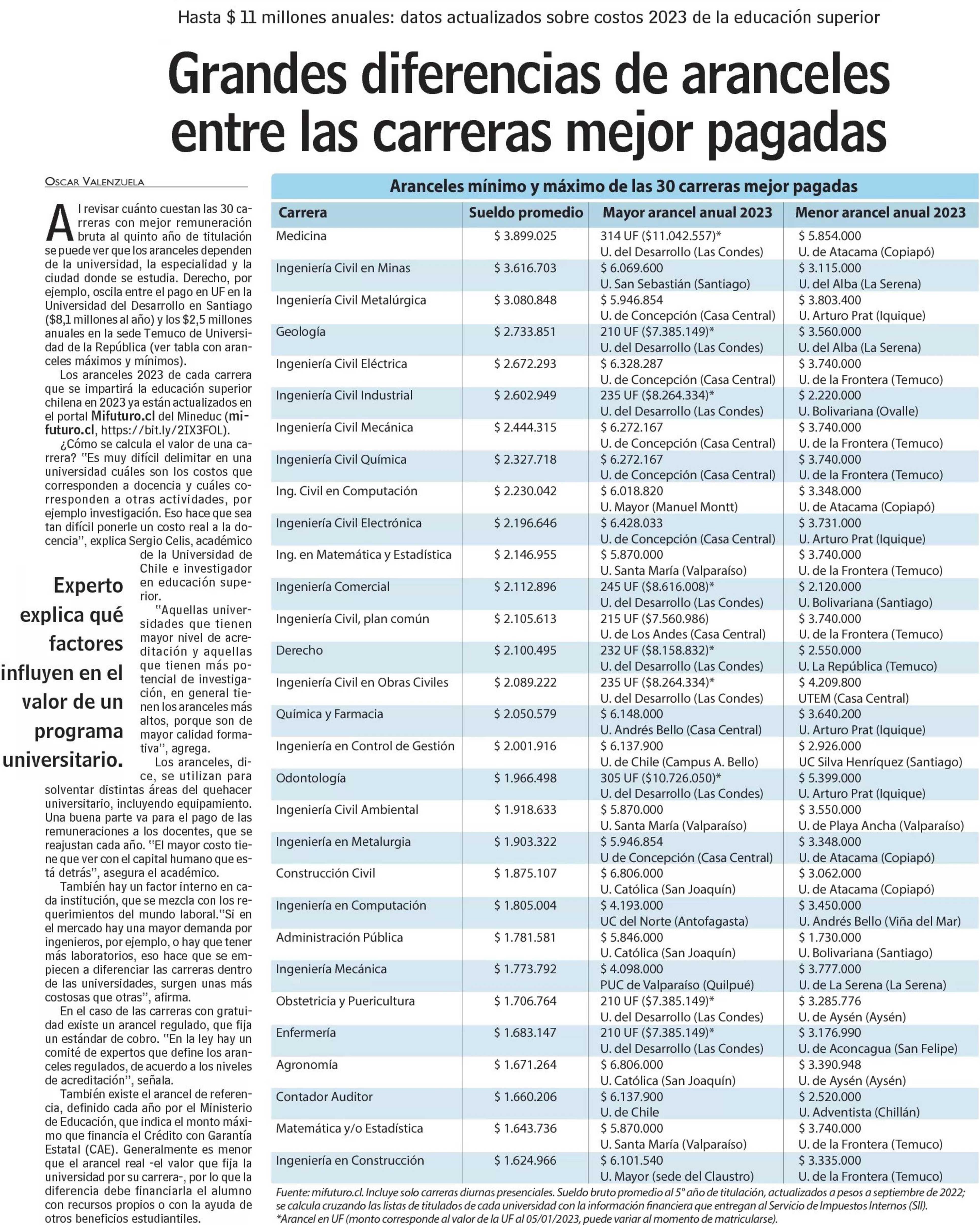 Grandes diferencias de aranceles entre las carreras mejor pagadas 06-01-2023 Las Últimas Noticias |
