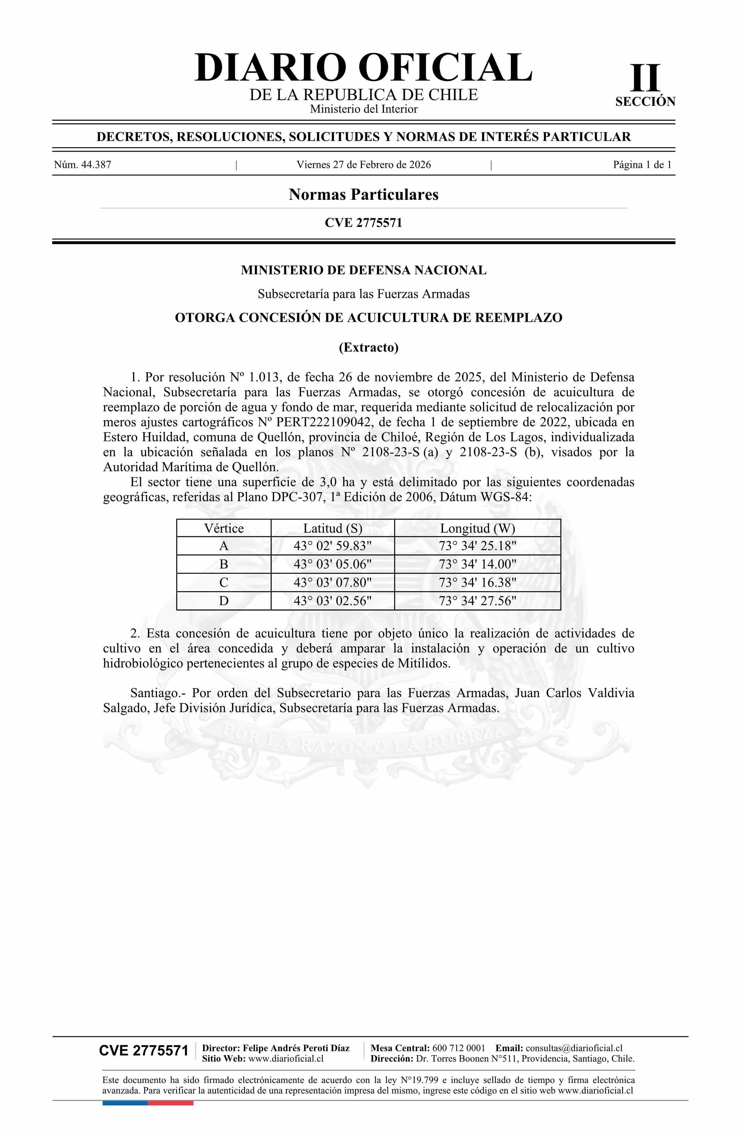 Fuente: Diario Oficial Edición Electrónica (Diario Oficial de Chile - 2 Normas Particulares) Página(s): 2
