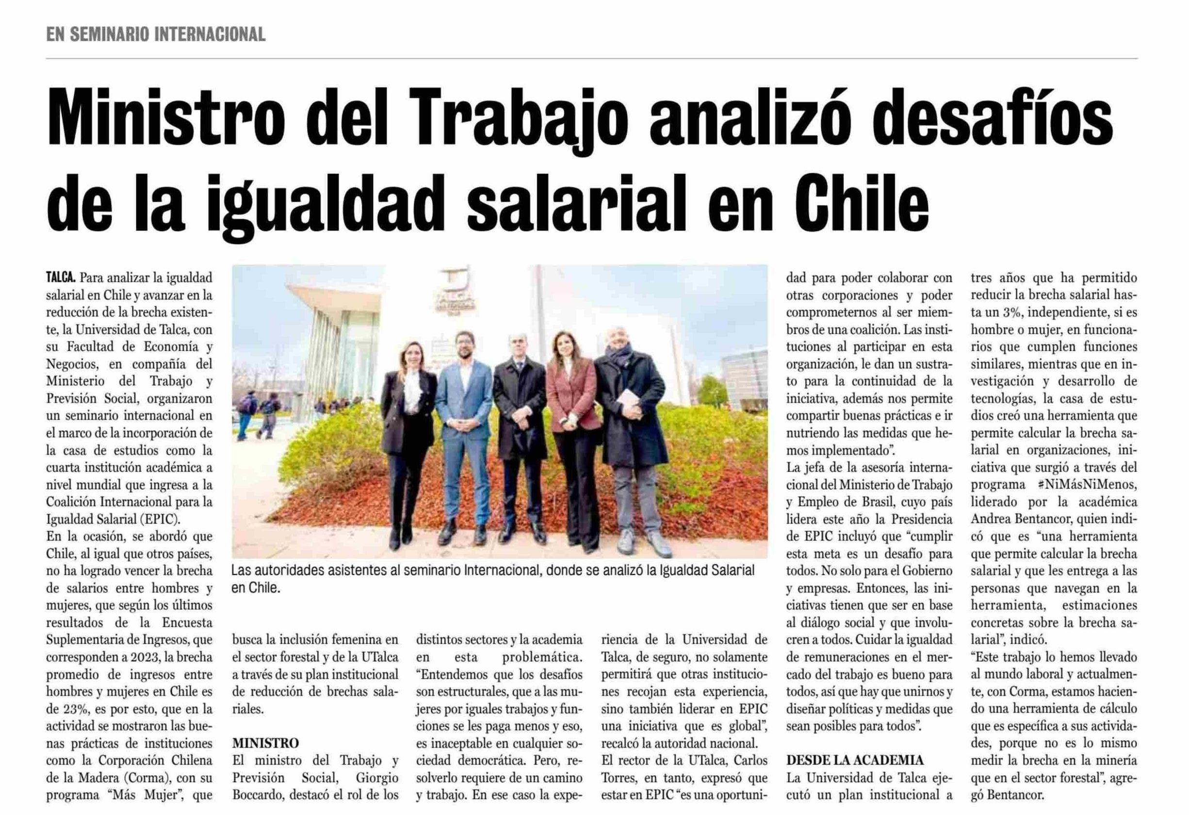 Ministro del Trabajo analizó desafíos de la igualdad salarial en Chile 23-06-2025 La Prensa de Curicó |
