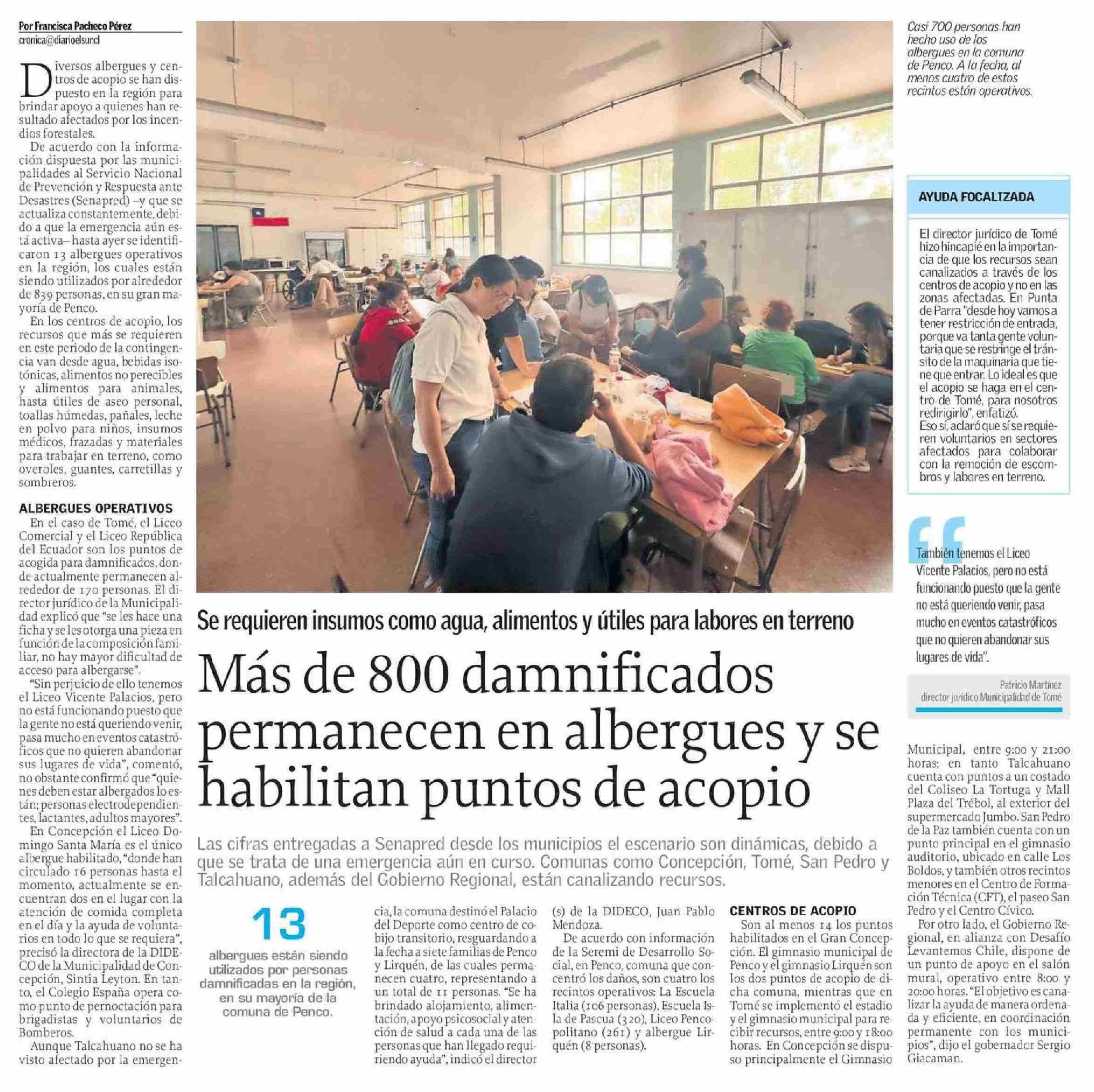 Más de 800 damnificados permanecen en albergues y se habilitan puntos de acopio 20-01-2026 El Sur |