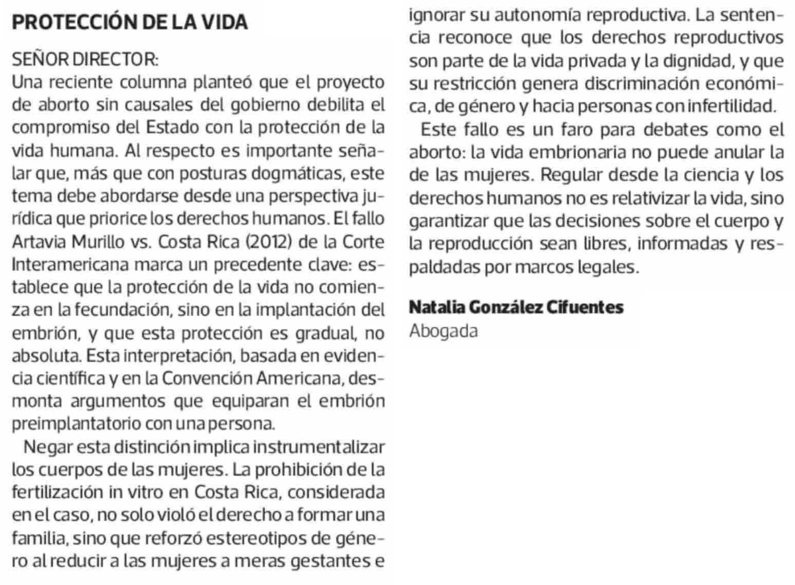 CARTAS: PROTECCIÓN DE LA VIDA 09-06-2025 La Tercera |