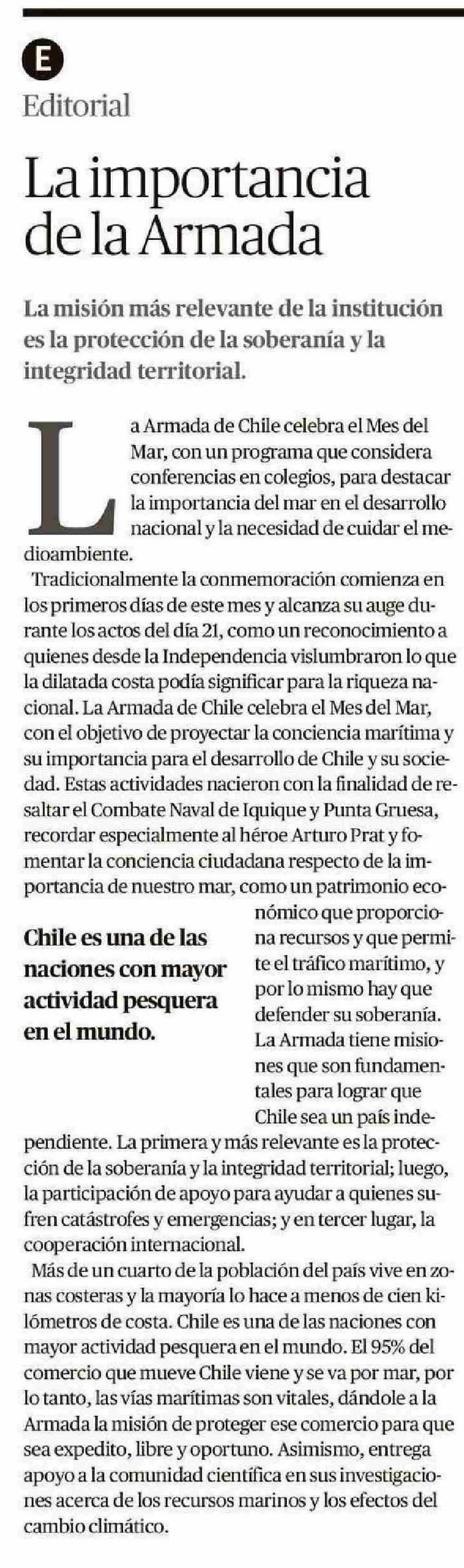 Editorial: La importancia de la Armada 19-05-2025 El Austral de Osorno |