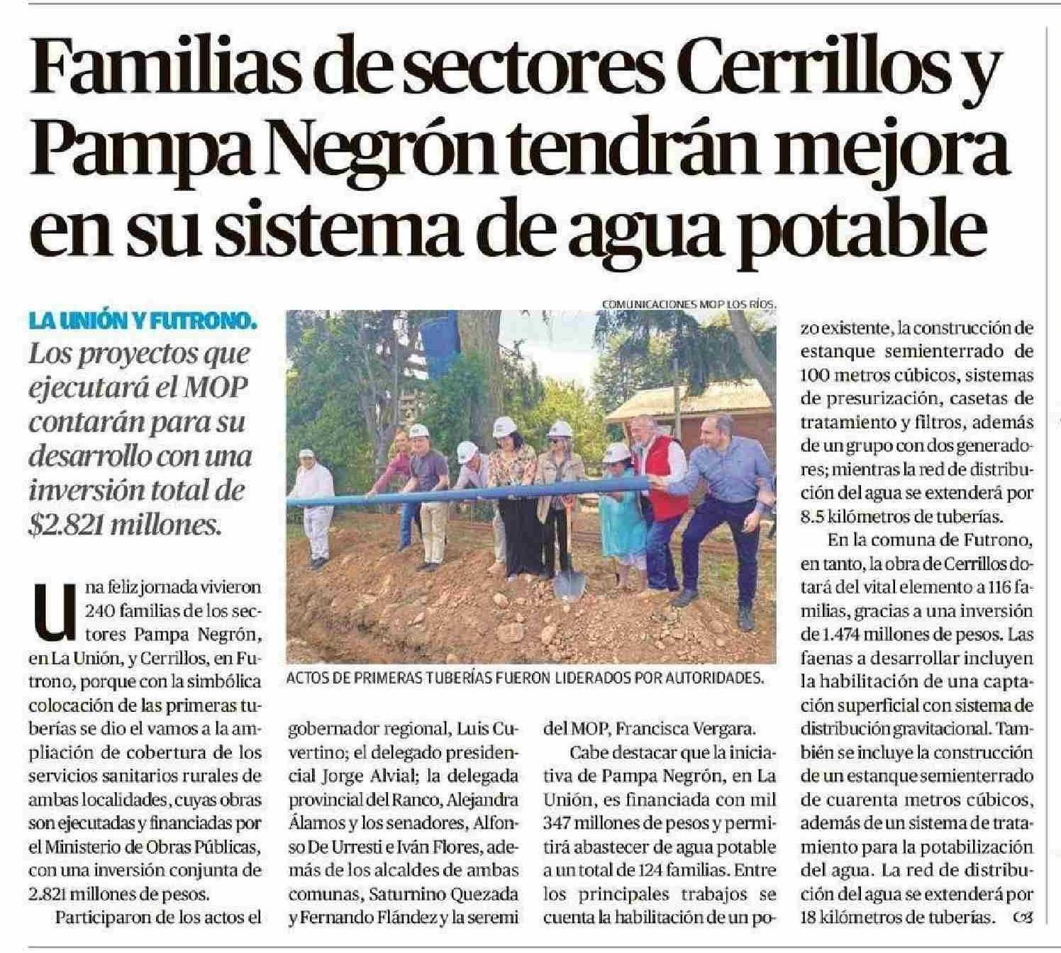 Familias de sectores Cerrillos y Pampa Negrón tendrán mejora en su sistema de agua potable 14-01-2026 Diario Austral Región de Los Ríos |
