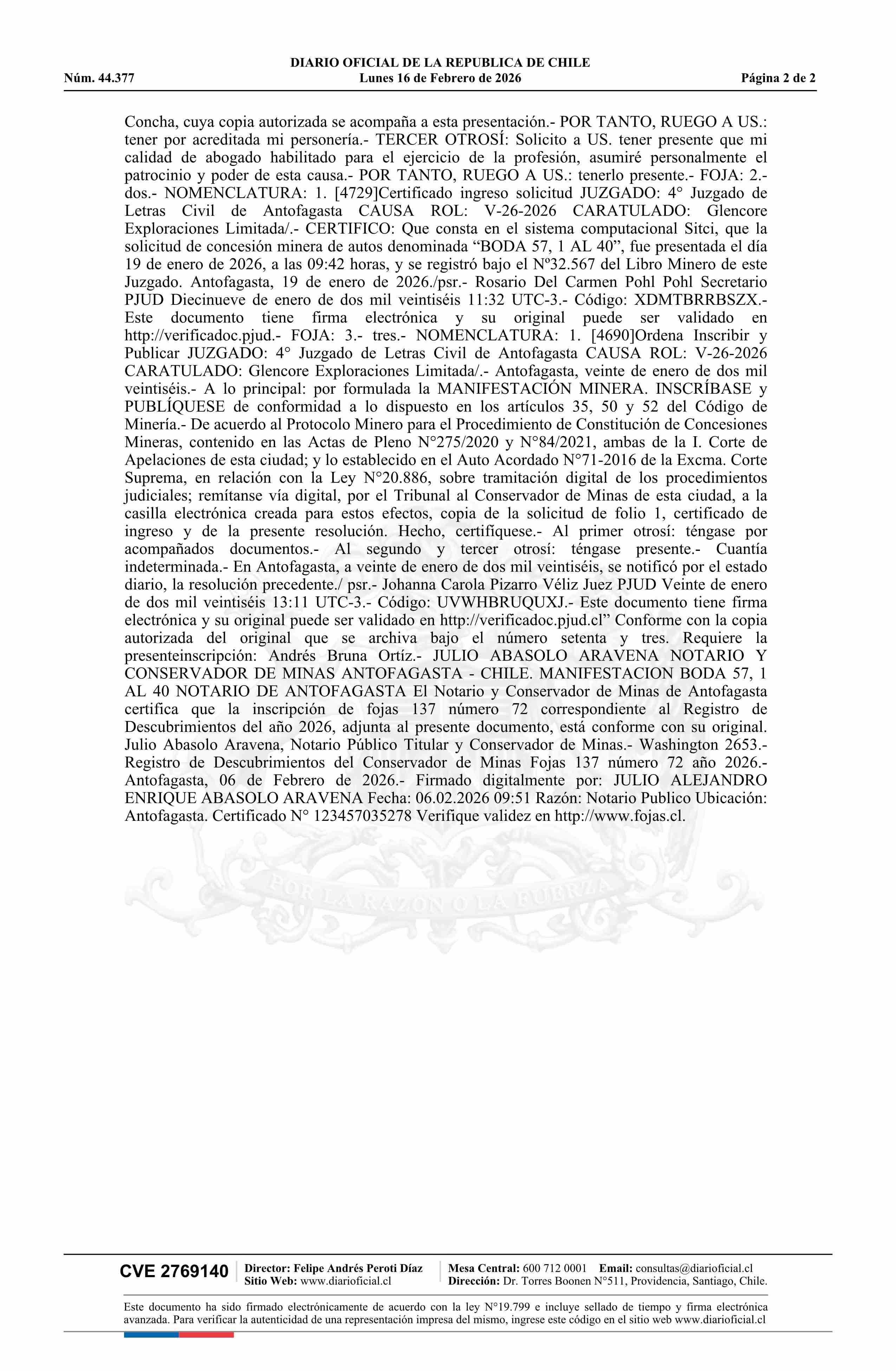16-02-2026 DIARIO OFICIAL CHILE - BOLETÍN OFICIAL DE MINERÍA