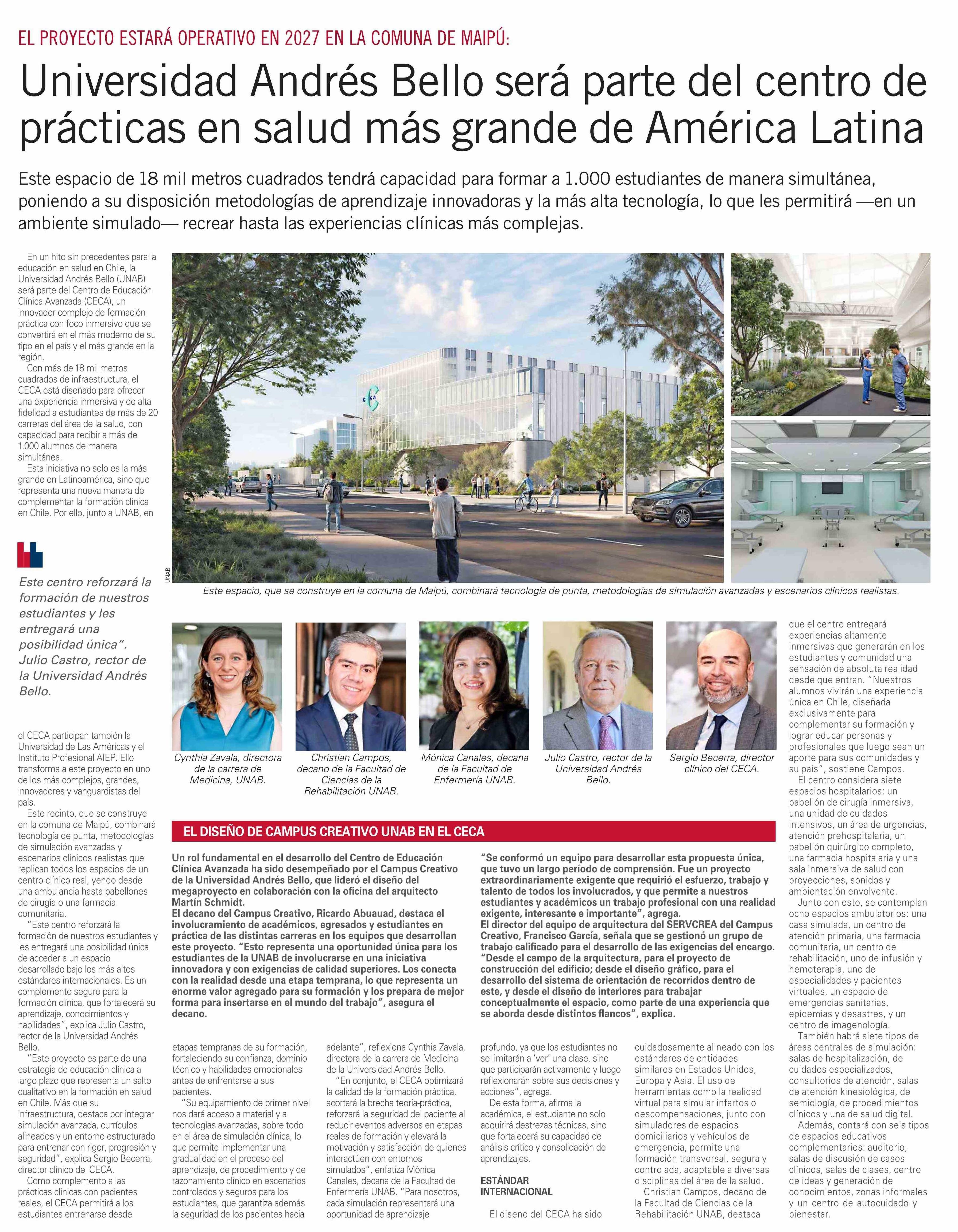 Universidad Andrés Bello será parte del centro de prácticas en salud más grande de América Latina 22-06-2025 El Mercurio |