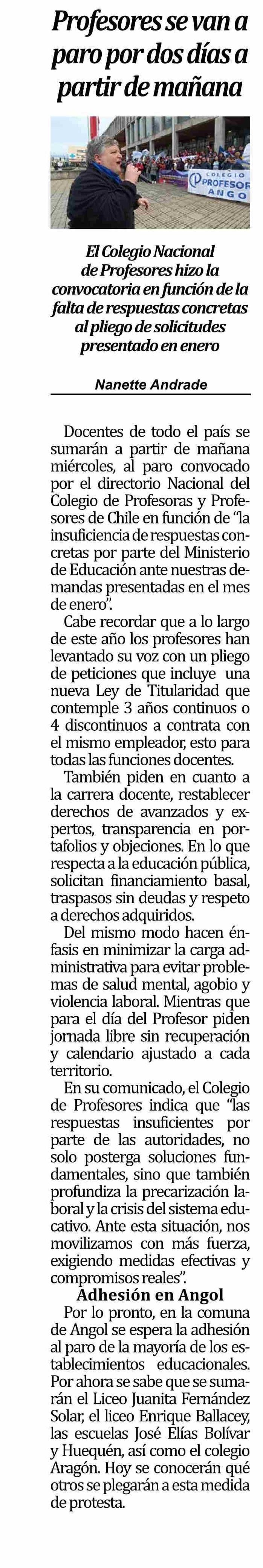 | Título: | Profesores se van a paro por dos días a partir de mañana |