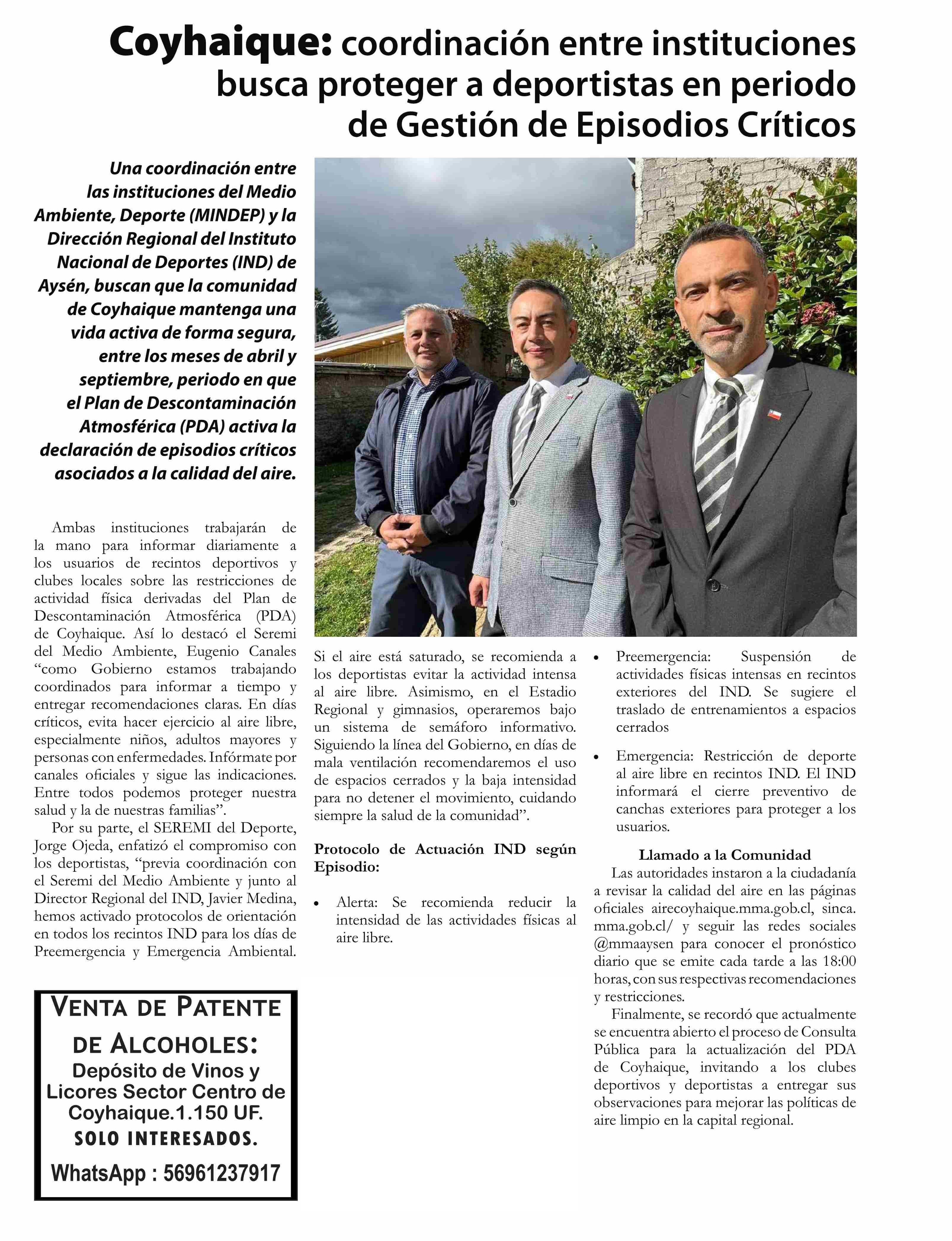 Coyhaique: coordinación entre instituciones busca proteger a deportistas en periodo de Gestión de Episodios Críticos 08-04-2026 El Divisadero |