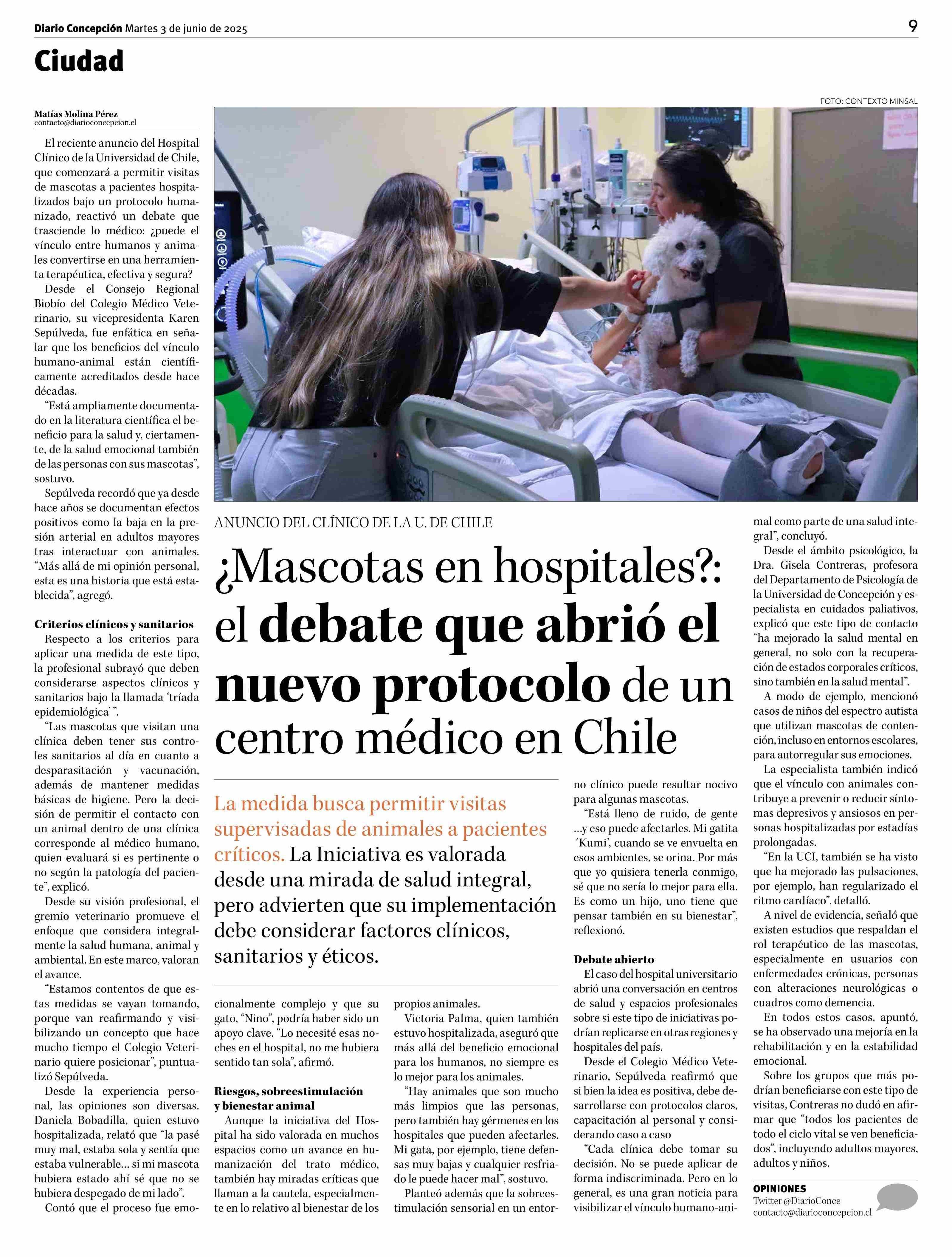 ¿Mascotas en hospitales?: el debate que abrió el nuevo protocolo de un centro médico en Chile 03-06-2025 Diario Concepción |