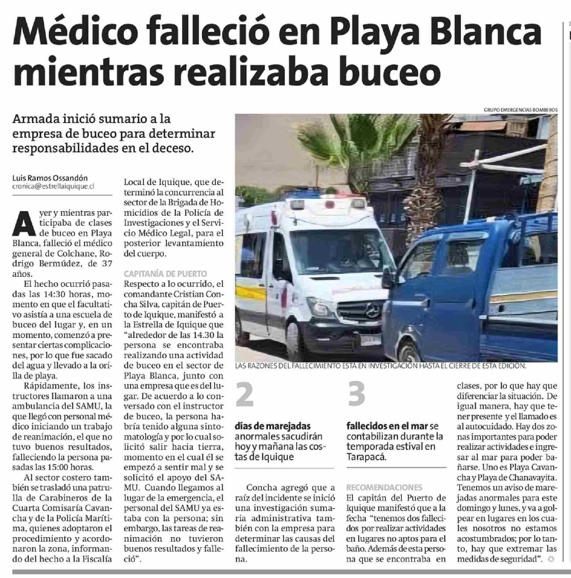 Título: Médico falleció en Playa Blanca mientras realizaba buceo