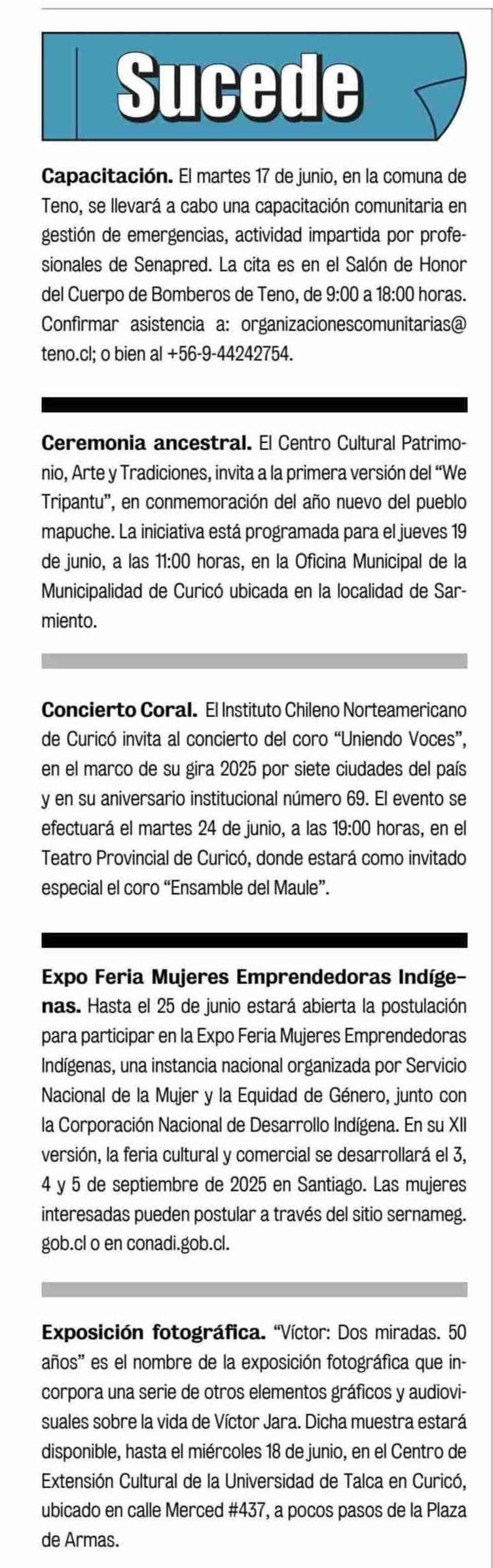 | Fecha: | 14-06-2025 | Sector: | Noticia general | Región: | Región del Maule |