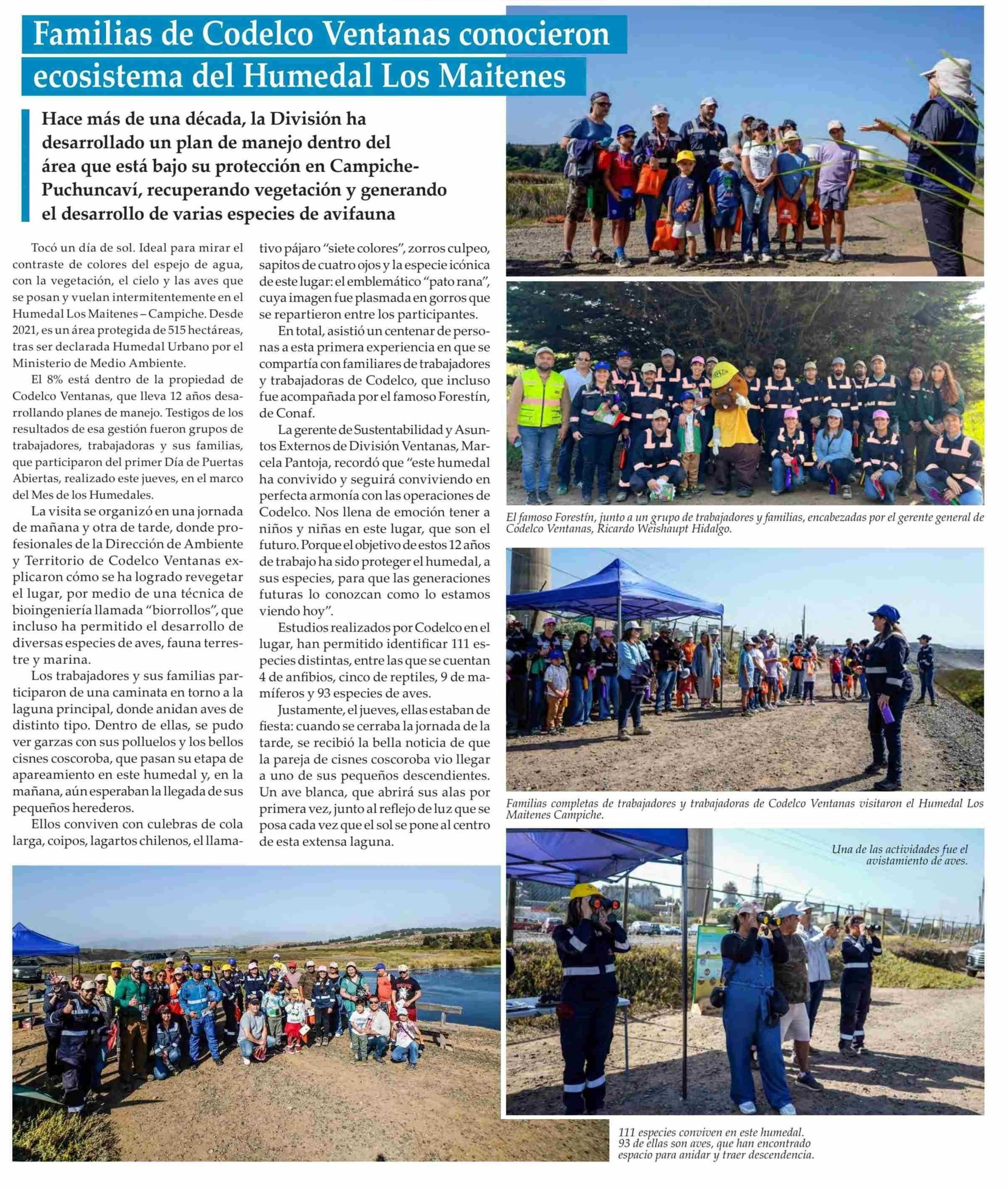 Familias de Codelco Ventanas conocieron ecosistema del Humedal Los Maitenes 17-02-2025 El Observador Vespertino |