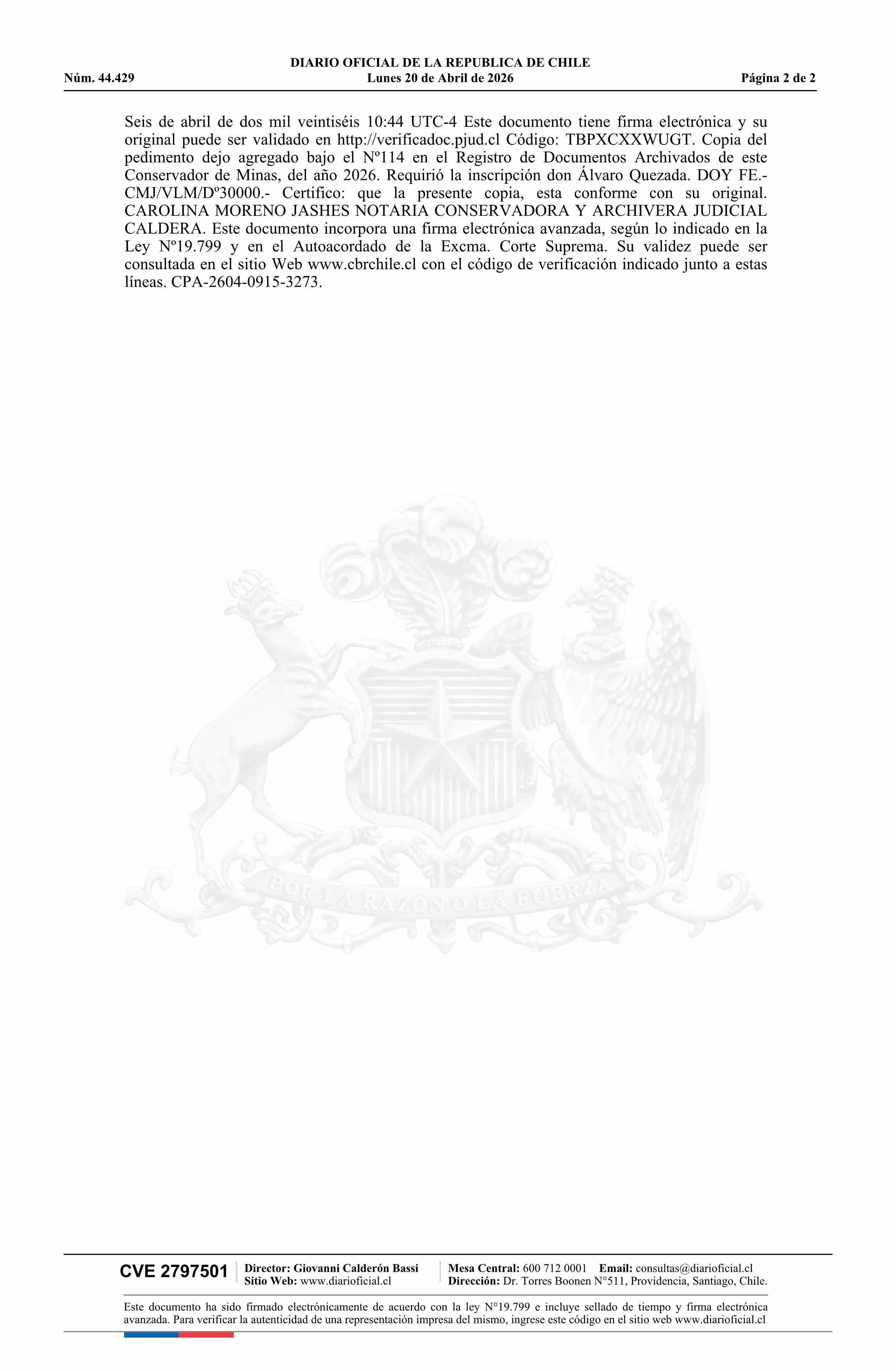 20-04-2026 DIARIO OFICIAL CHILE - BOLETÍN OFICIAL DE MINERÍA