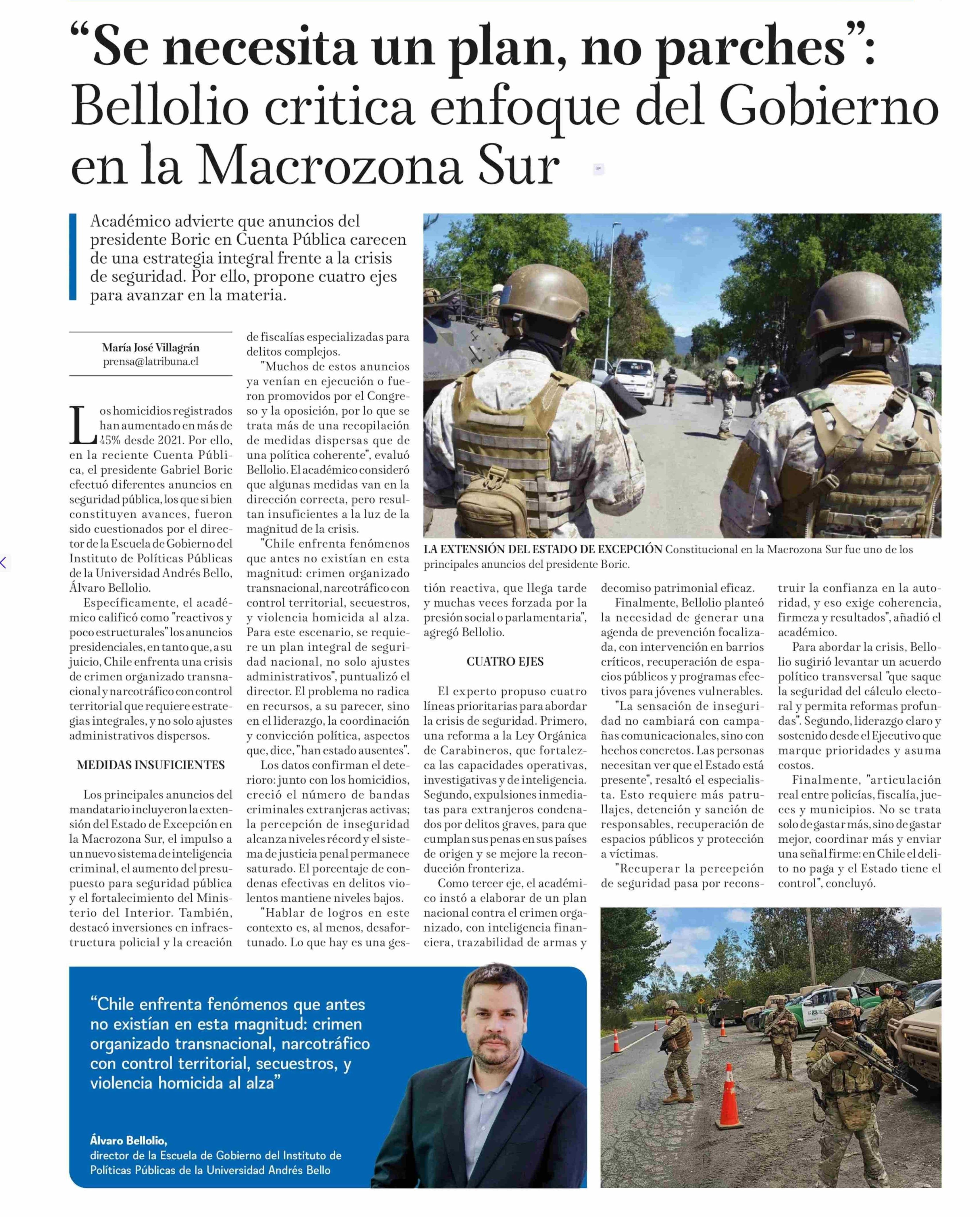 | Título: | “Se necesita un plan, no parches”: Bellolio critica enfoque del Gobierno en la Macrozona Sur |