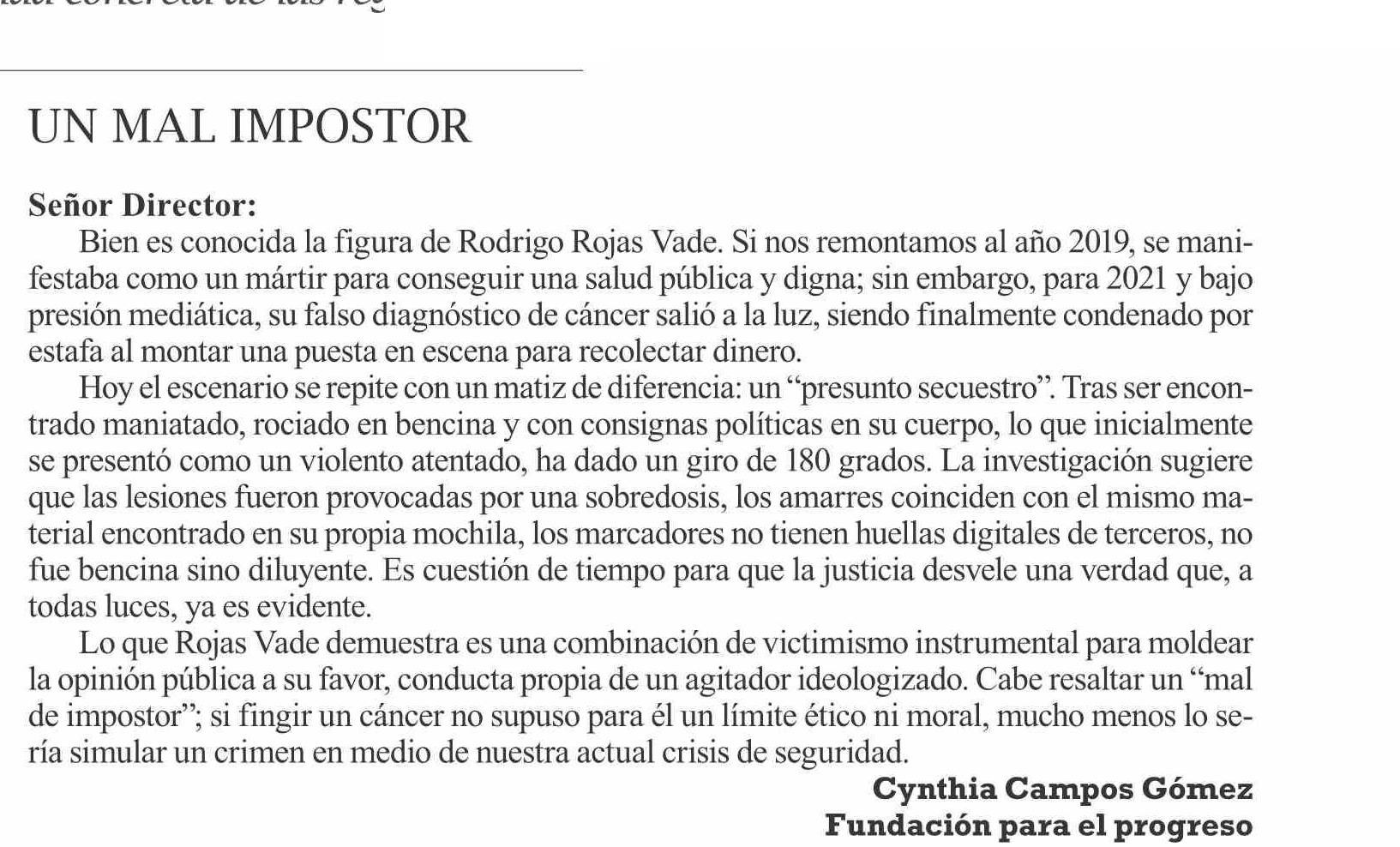 | Título: | CARTAS: UN MAL IMPOSTOR |