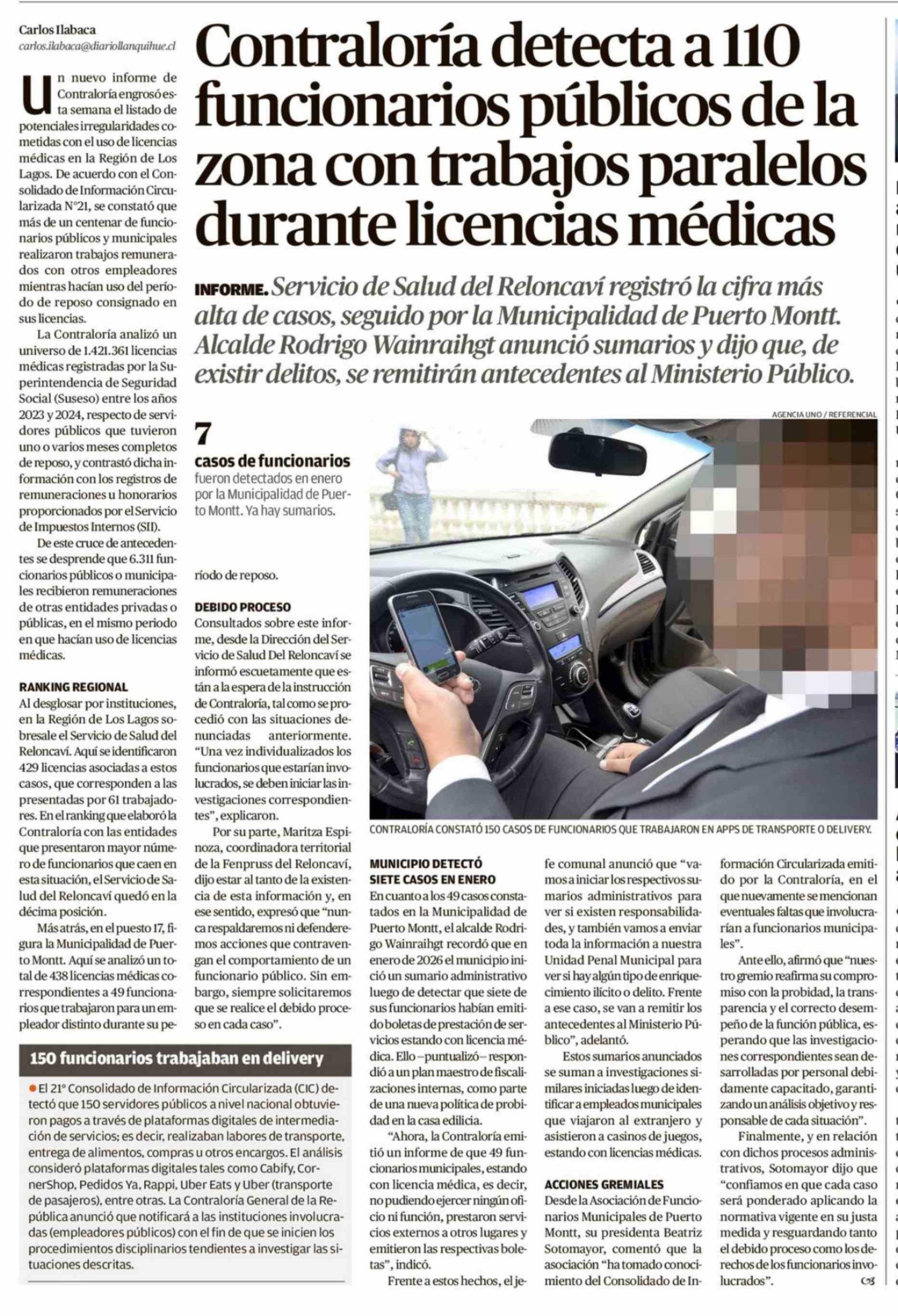 Contraloría detecta a 110 funcionarios públicos de la zona con trabajos paralelos durante licencias médicas 01-04-2026 El Llanquihue |